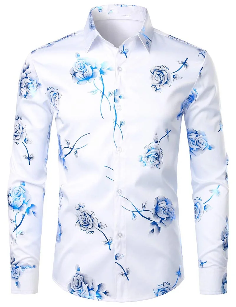 2024 Heren Overhemd Met Bloemen Lange Mouwen Heren Casual All-Match Mode Straat Heren Overhemd Revers Single-breasted Lange Mouw Top quantity