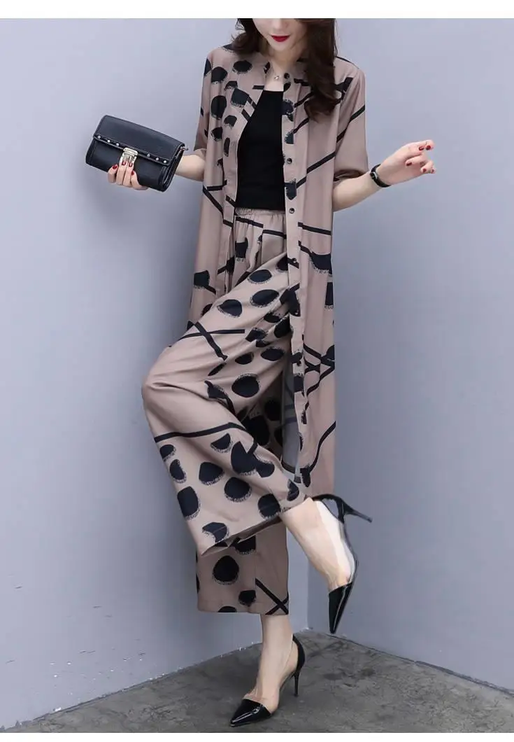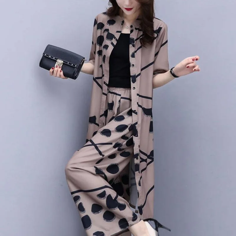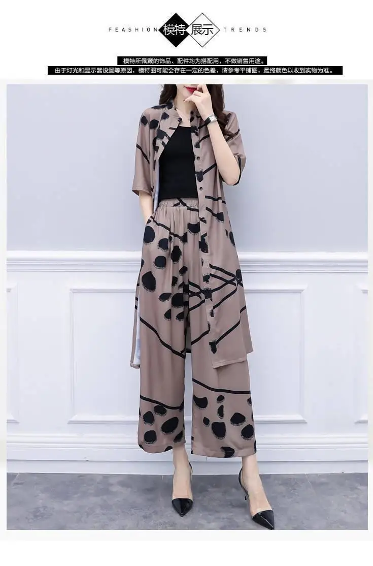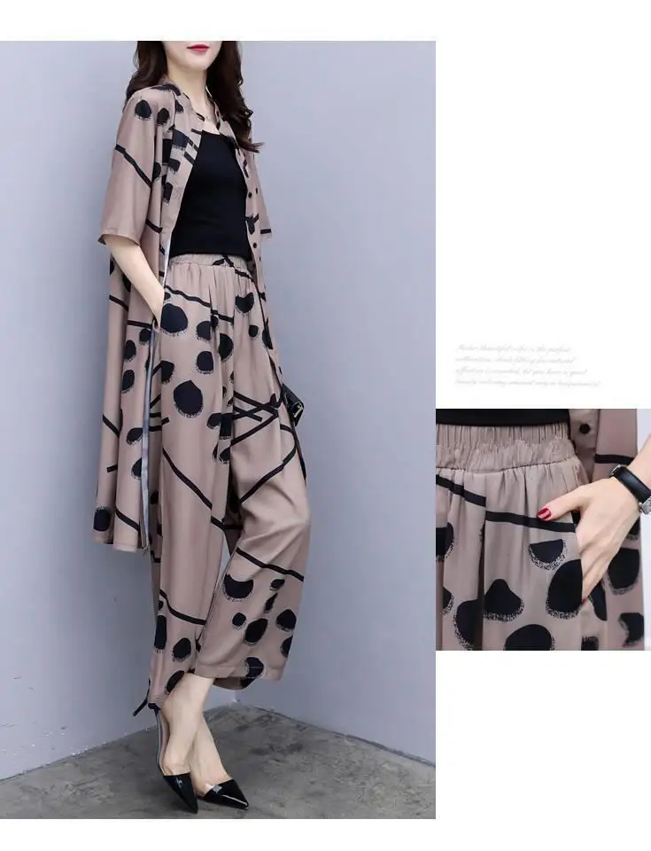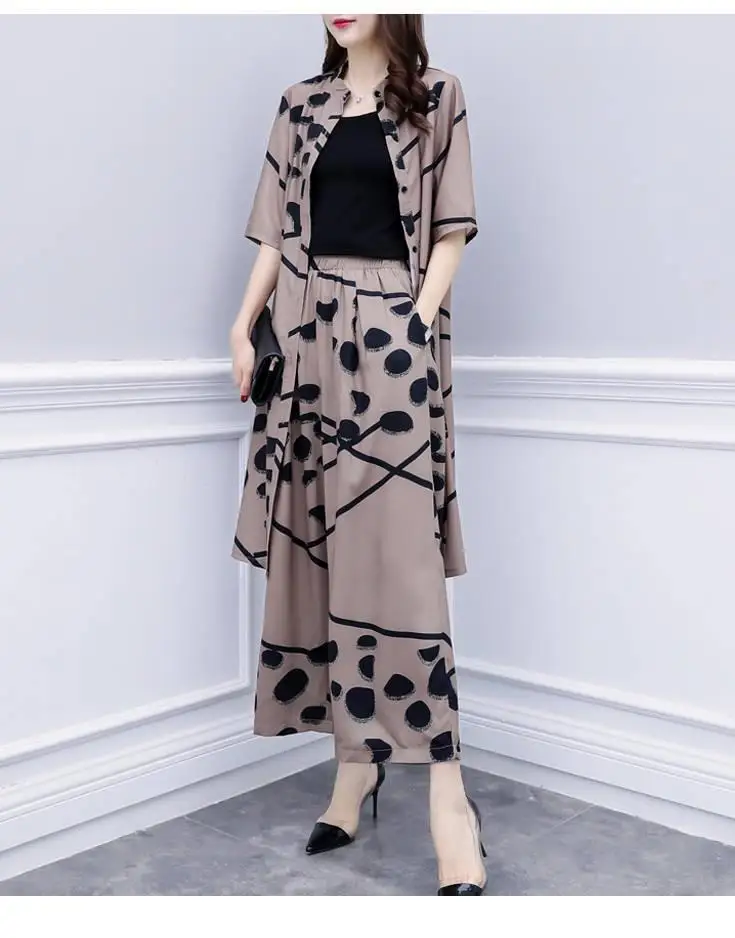 Dames zomer 2025, nieuwe Koreaanse stijl, casual plus size chic chiffon vest, top en wijde pijpen broek, mode tweedelige set quantity