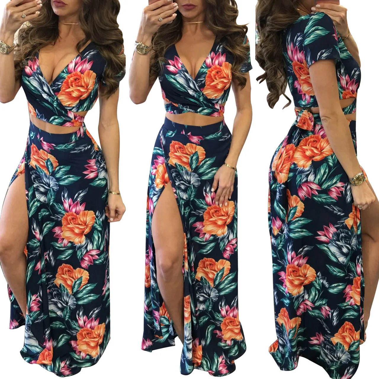 / Dames Zomerjurk Sets Met Bloemenprint Tweedelige Rok Set Sexy Crop Top En Rok 2-delige Pakken Bohemian Party Outfits 2024 Nieuw