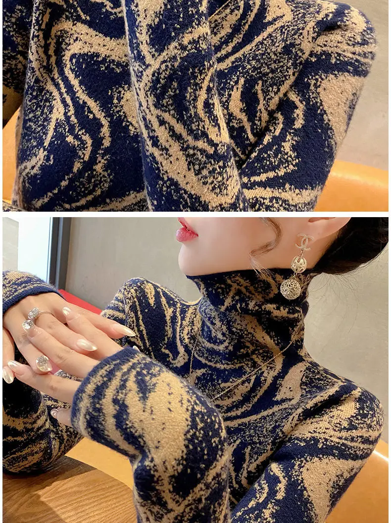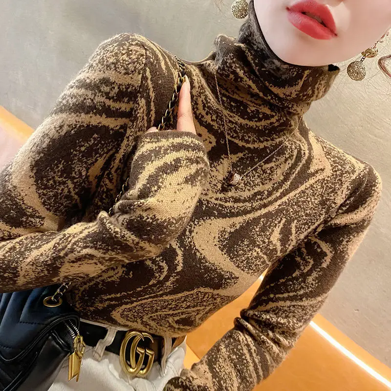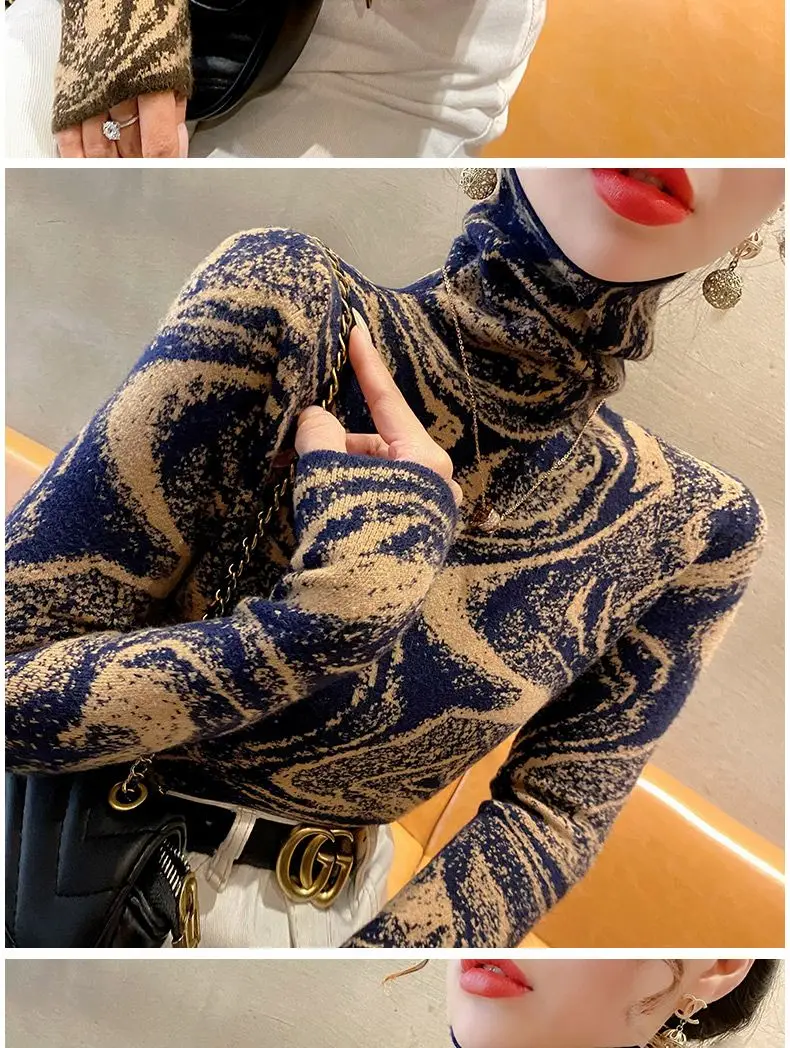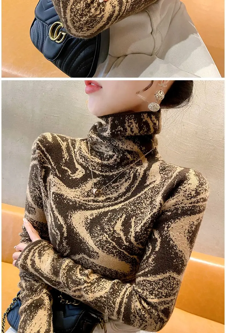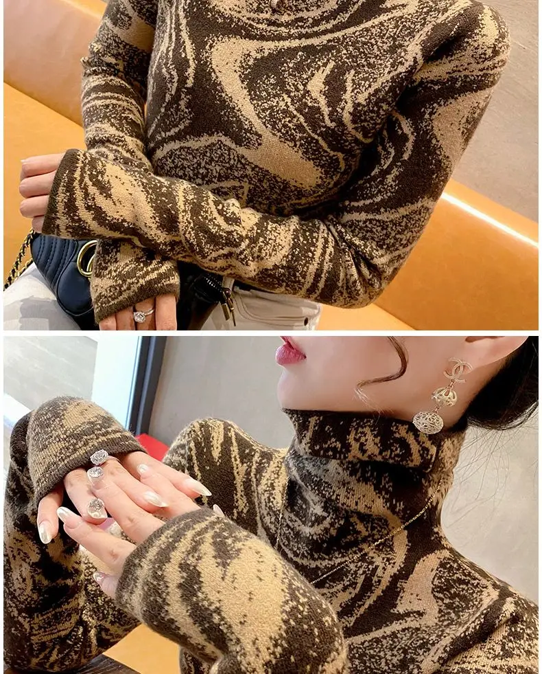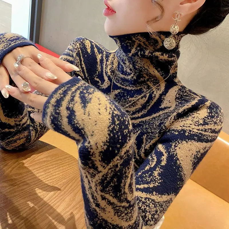 Dameskleding Elegante mode Slanke coltrui Truien Herfst Winter Vintage All-match geometrische gebreide truien Top met lange mouwen quantity