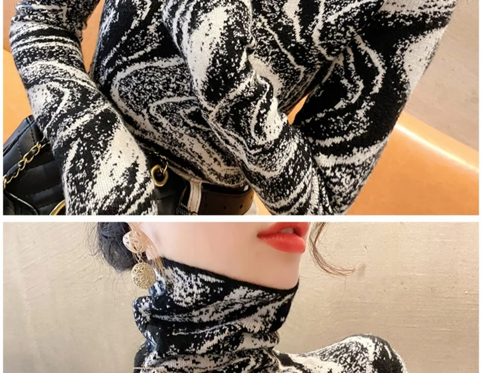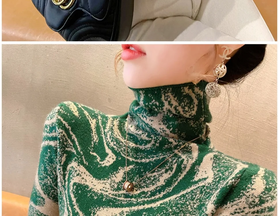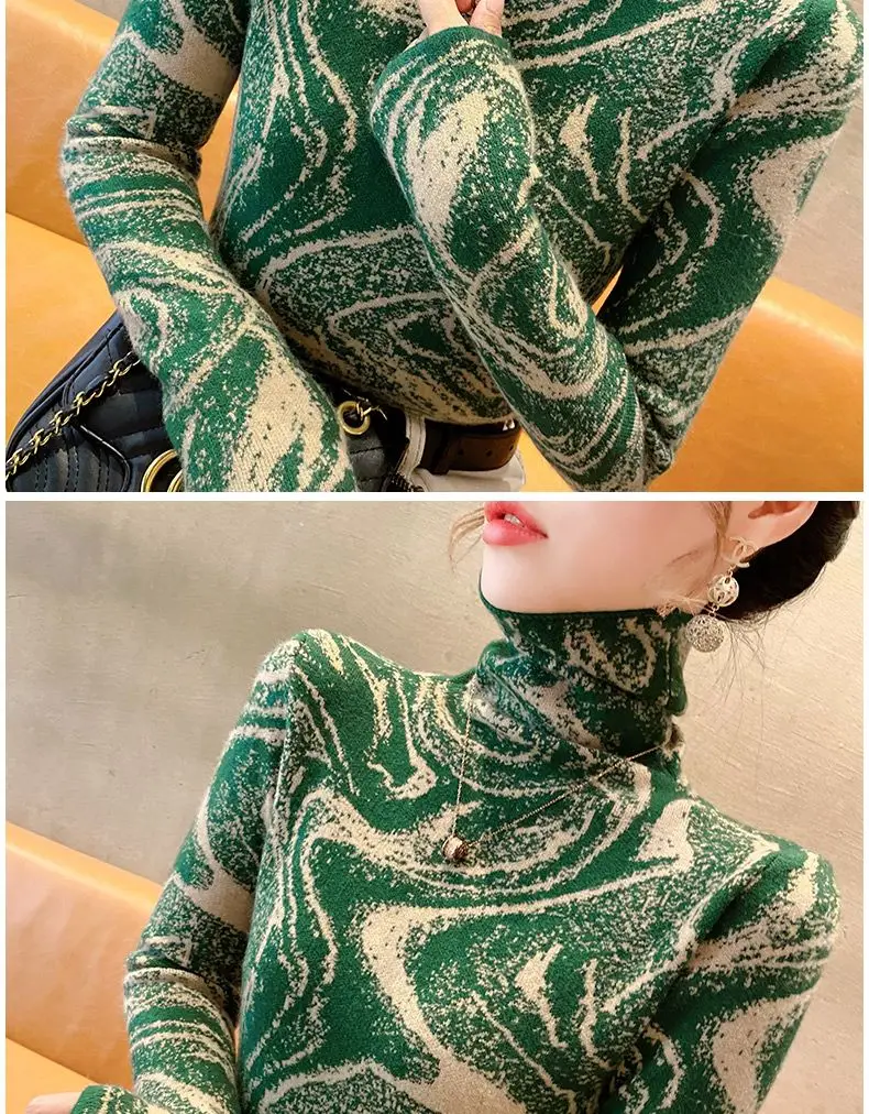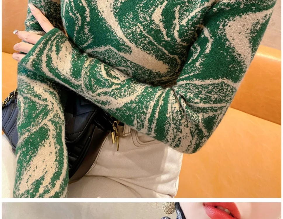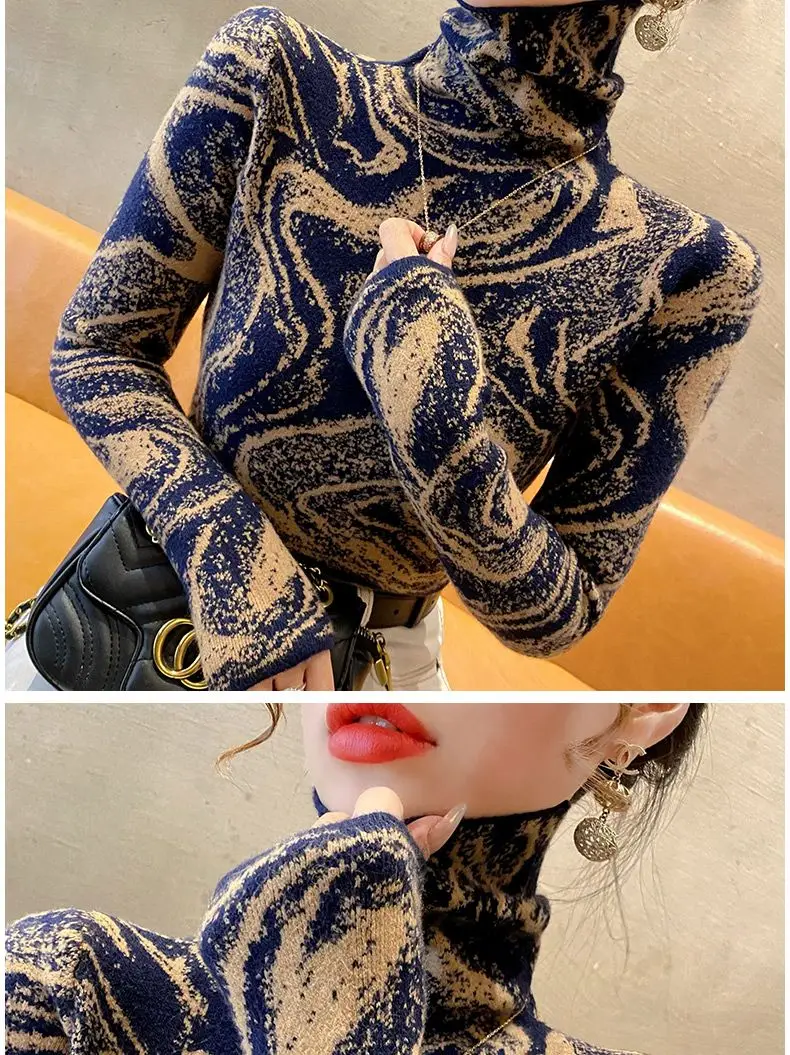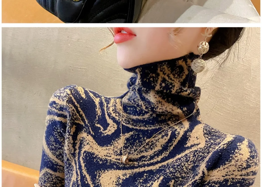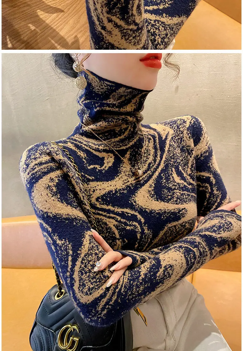 Dameskleding Elegante mode Slanke coltrui Truien Herfst Winter Vintage All-match geometrische gebreide truien Top met lange mouwen quantity