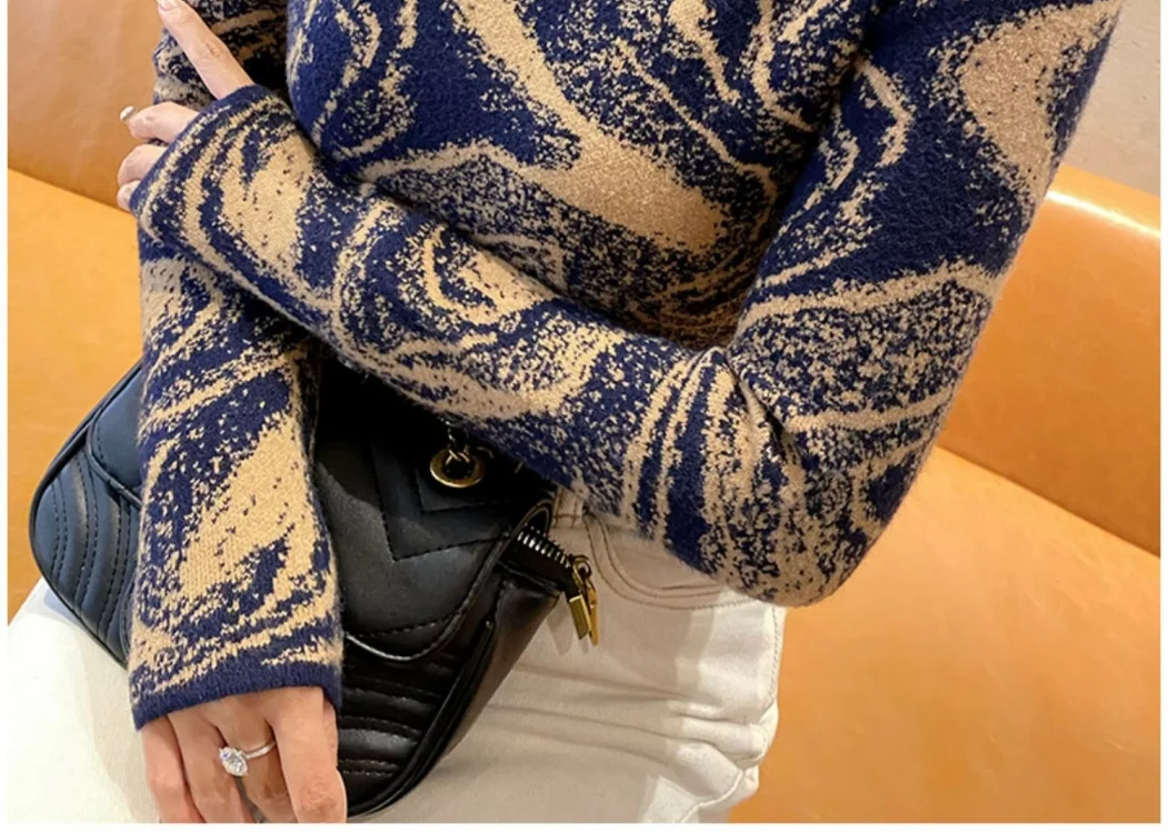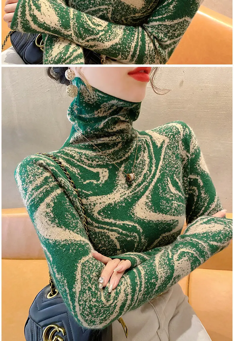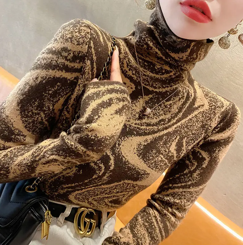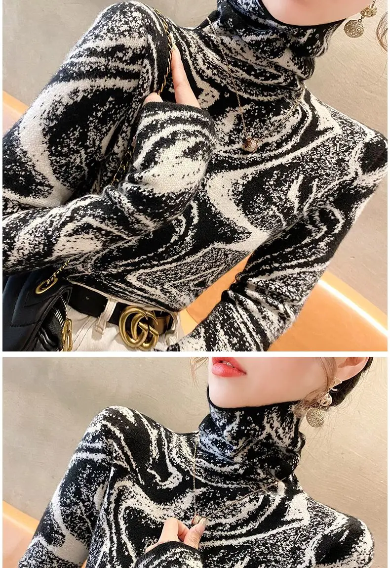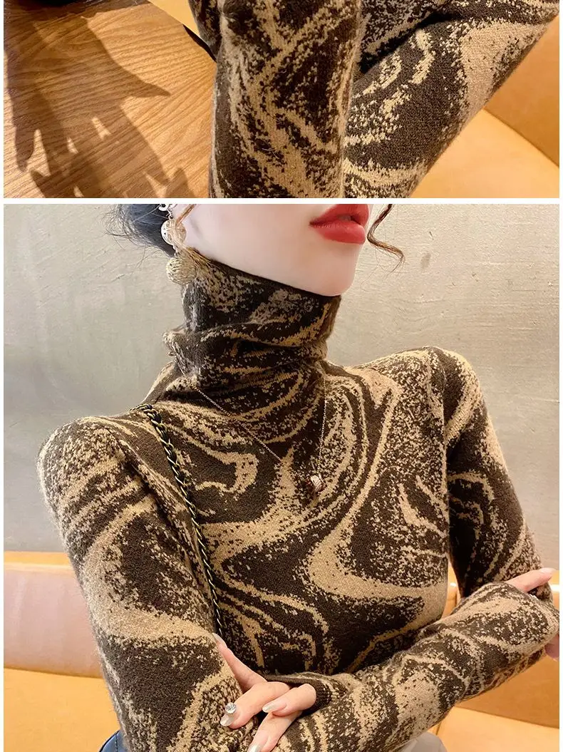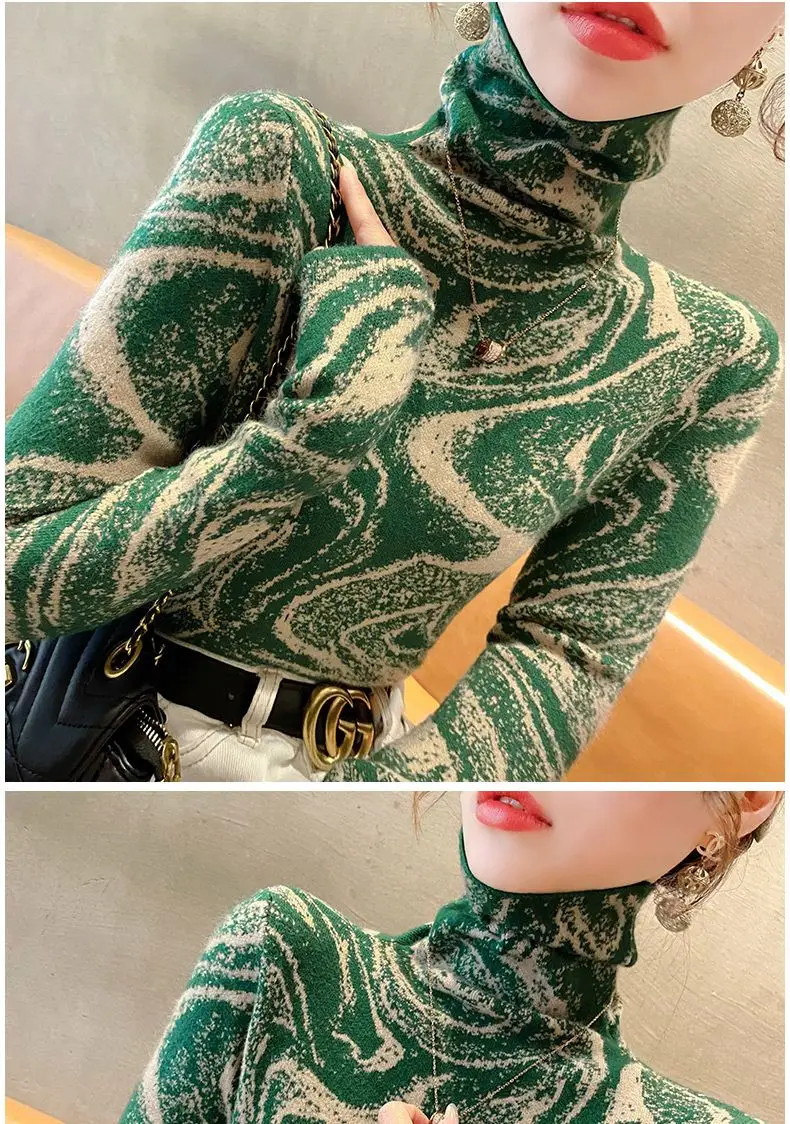 Dameskleding Elegante mode Slanke coltrui Truien Herfst Winter Vintage All-match geometrische gebreide truien Top met lange mouwen quantity