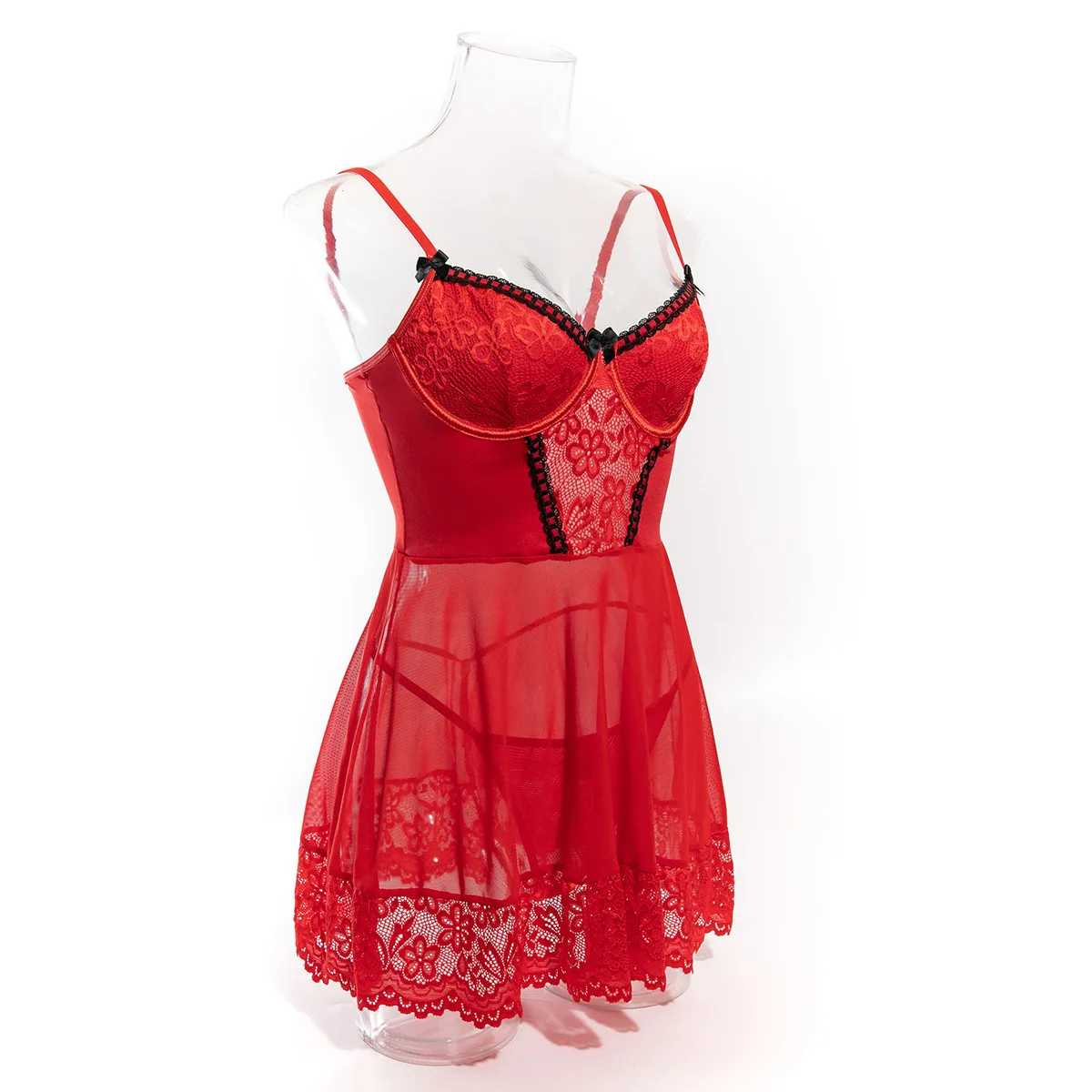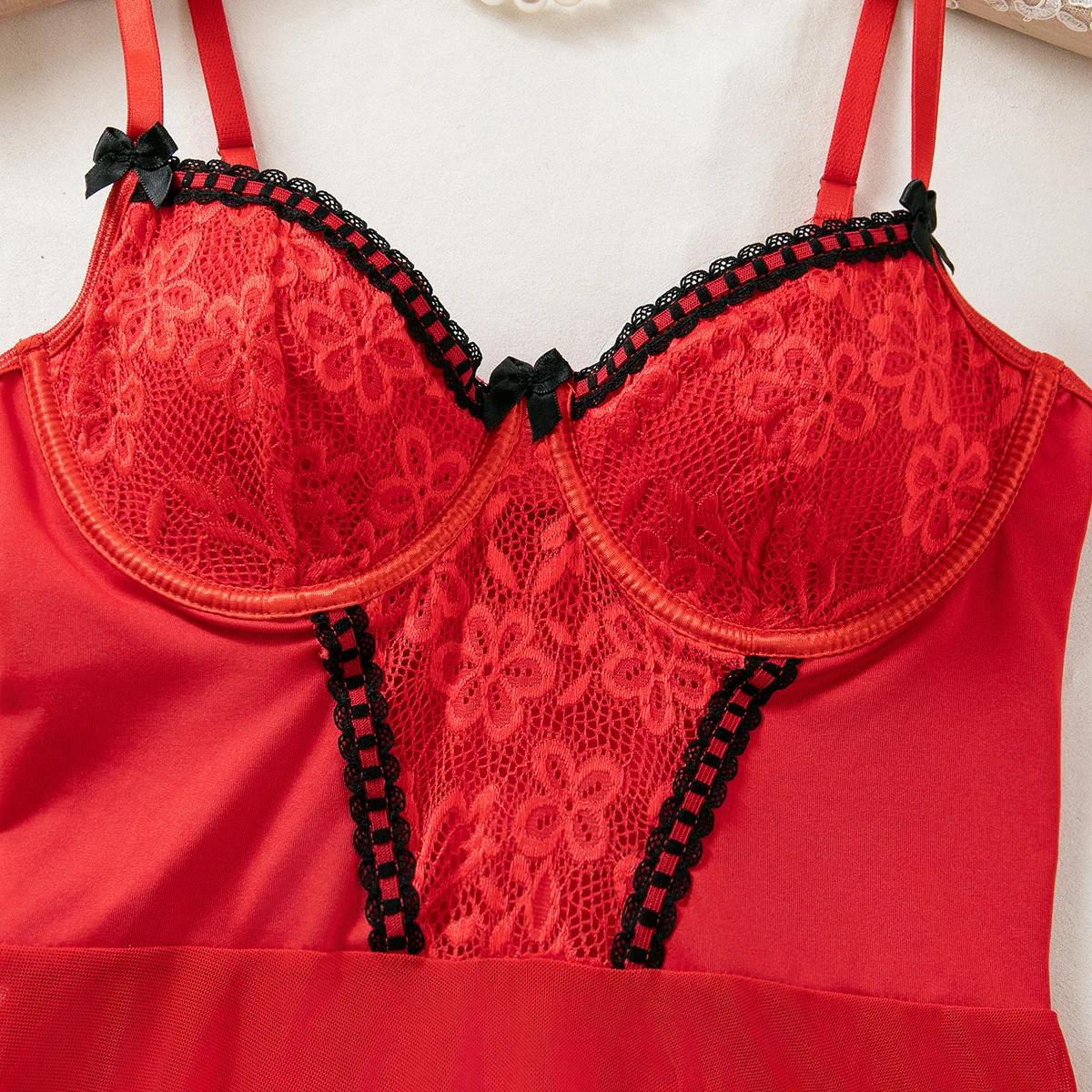 New In Sexy Lingerie For Woman Transparent Porno Teddy Costumes Babydoll Lace Dress Plus Size Underwear Crotchless Sleepwear