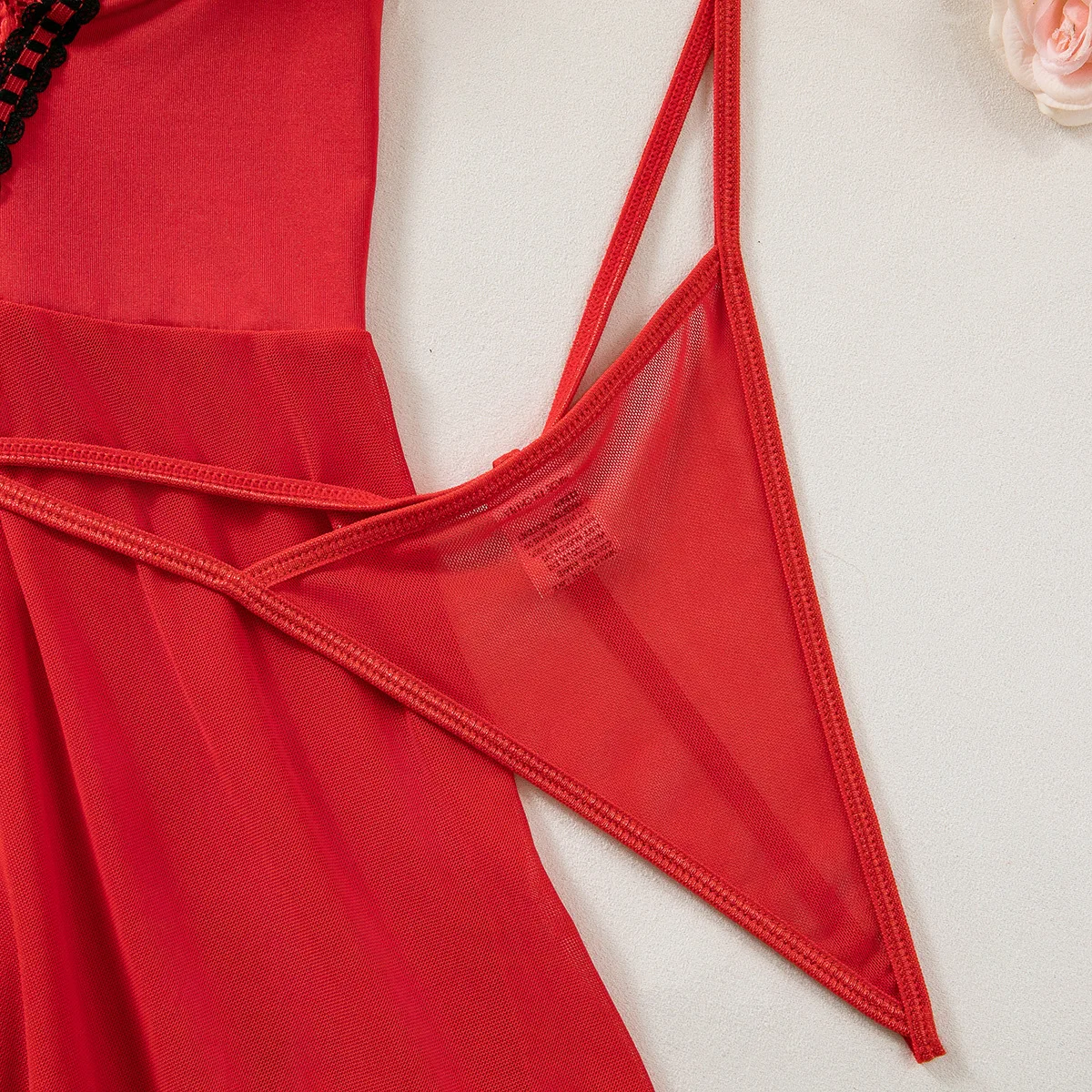 / Een set sexy driedelige set met netkousen, ondergoedset, ondergoed, nachtjapon, kanten splitsen, kanten vormgevend ondergoed