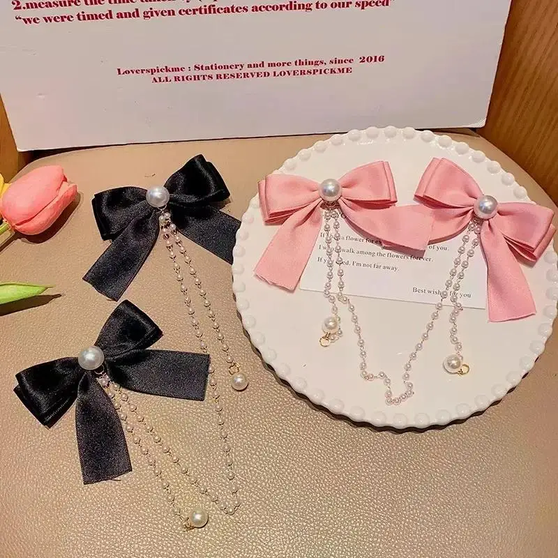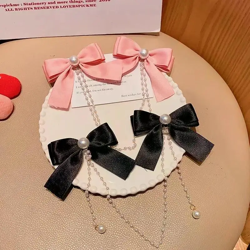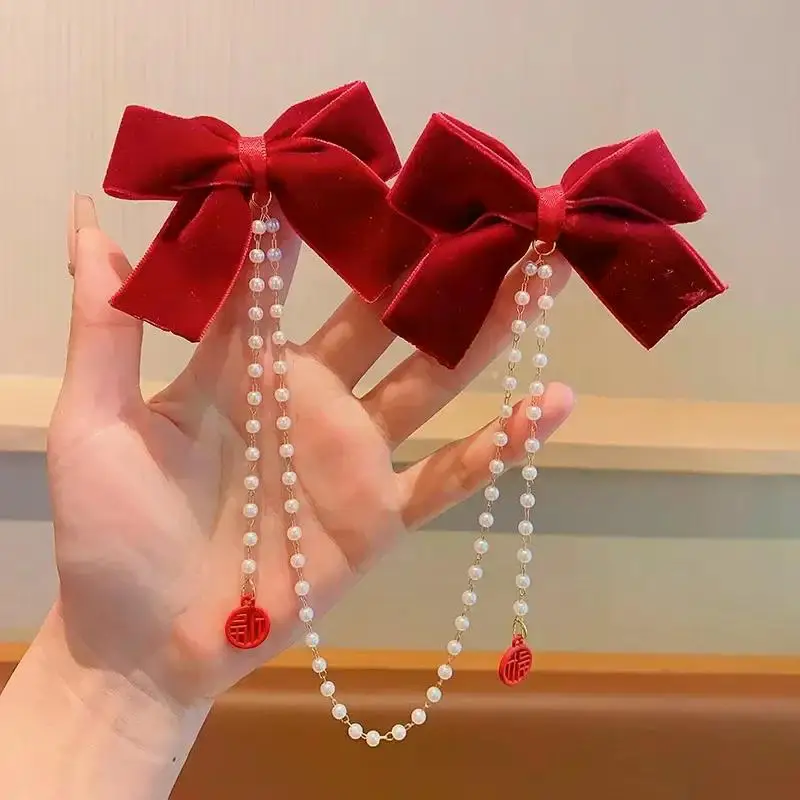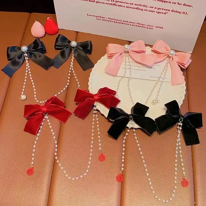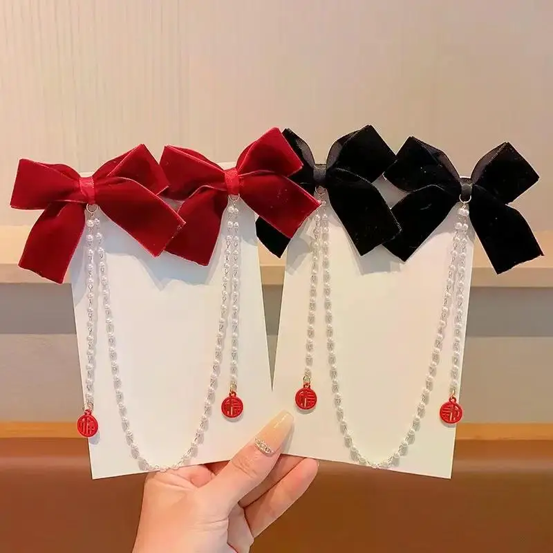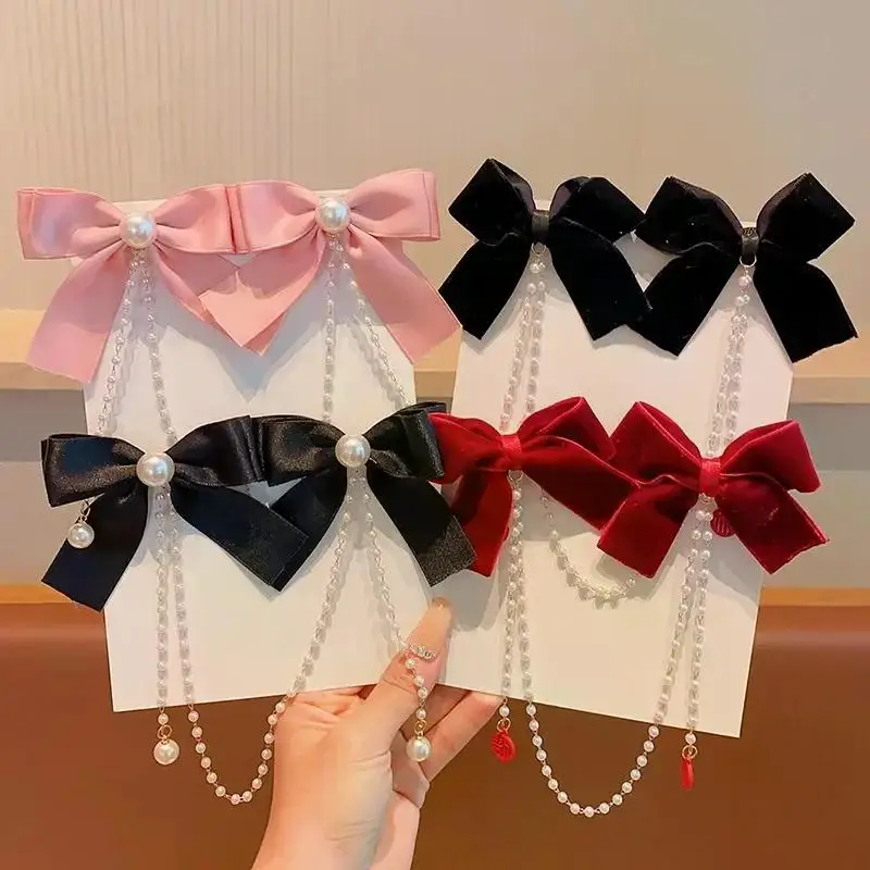 / Elegante Parel Strik Kwastje Haarclip Effen Fluwelen Haarklauw Kinderen Prinses Beste Haarspelden Nieuwe Mode Schoonheid Haaraccessoires