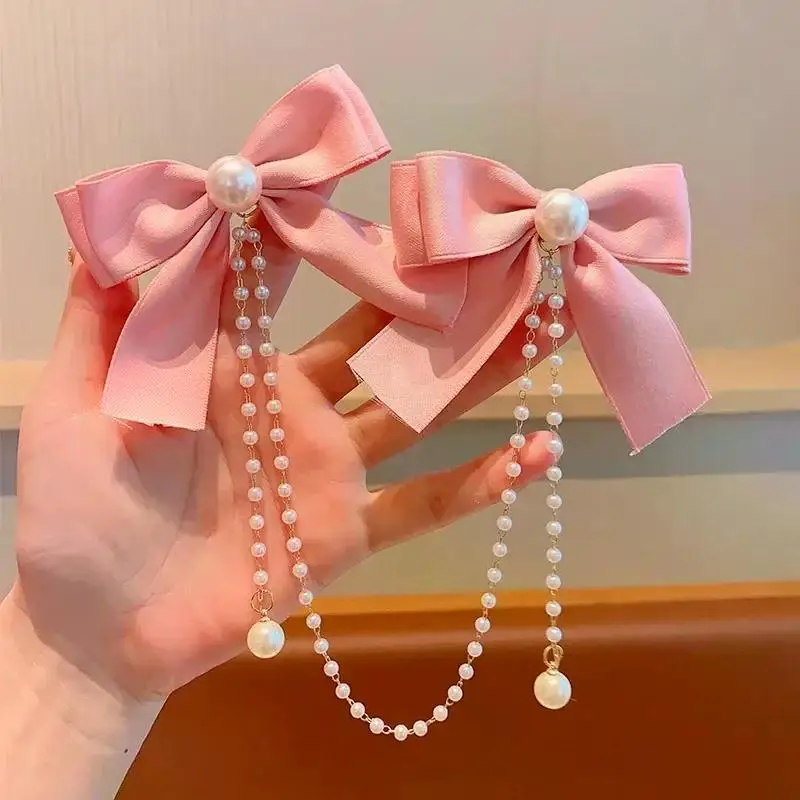 Elegant Pearl Bow Tassel Hair Clip Solid Velvet Hair Claw Children Princess Best Hairpins New Fashion Beauty Hair Accessories