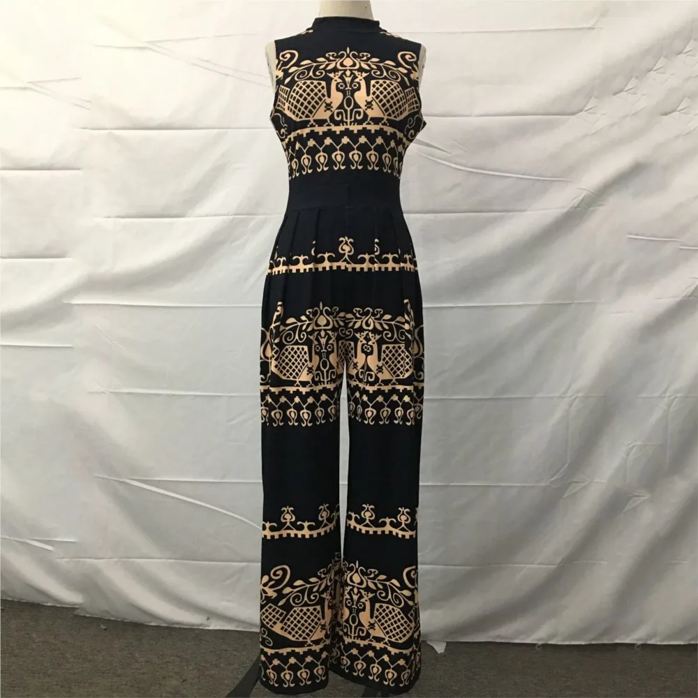 / Elegante vrouwen wijde pijpen lange jumpsuit 2024 lente zomer mode gedrukt mouwloos casual vakantie bodysuits jumpsuits broek