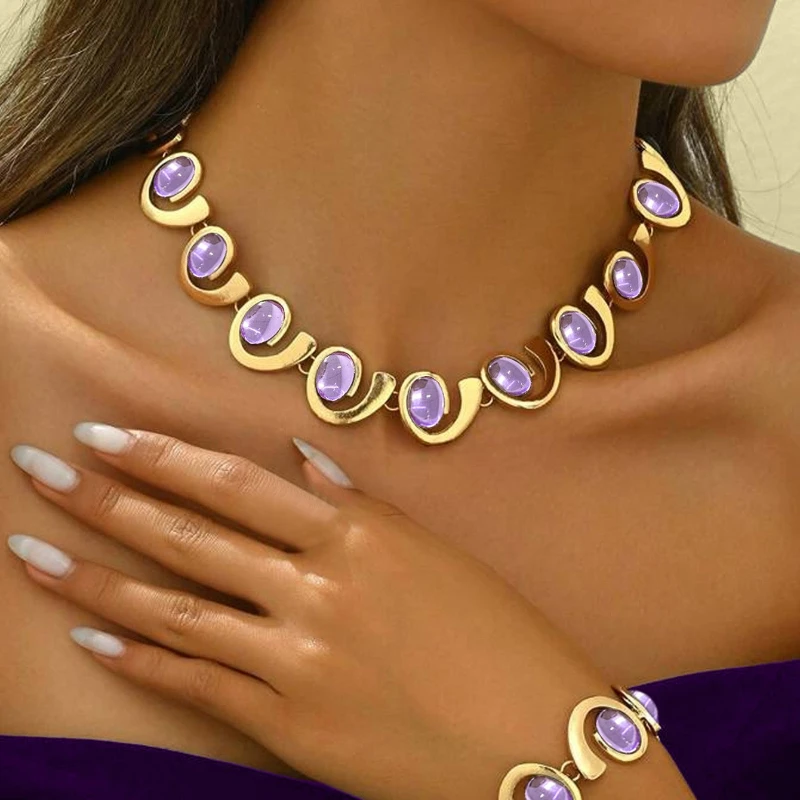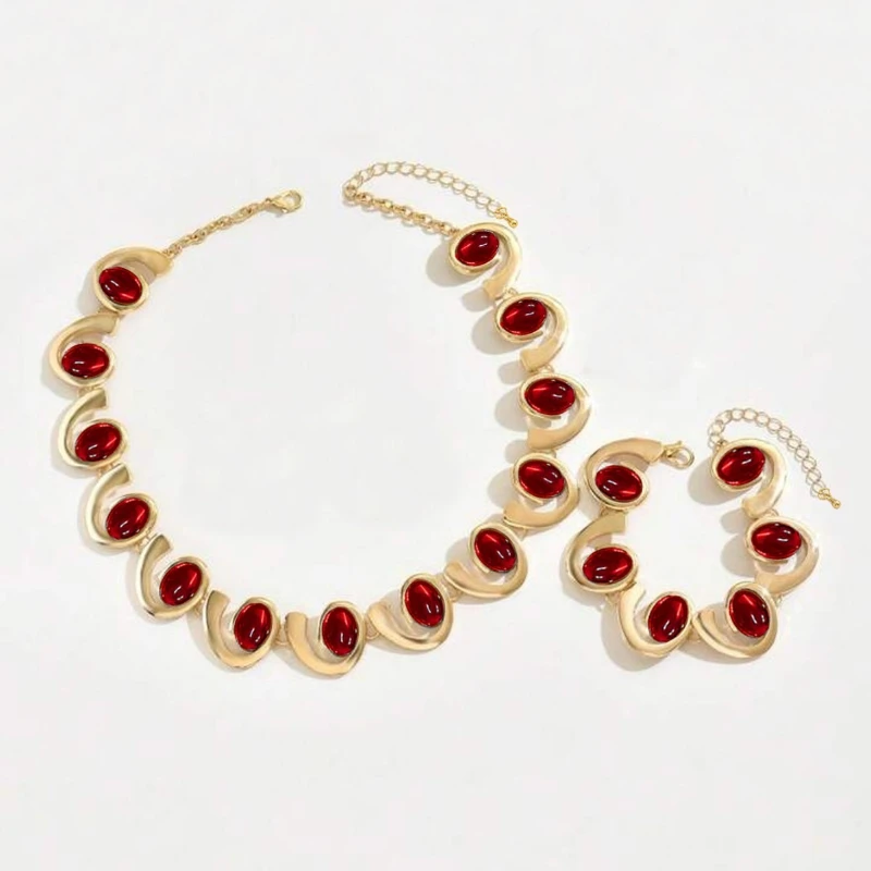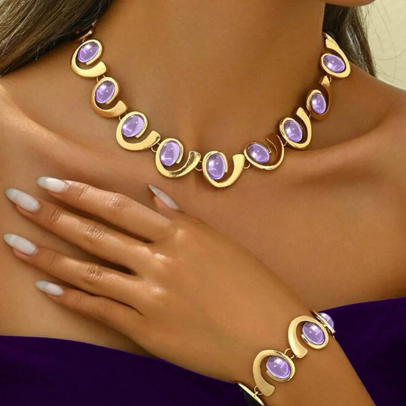 / Gekleurde steen geometrische armband ketting set voor vrouwen eenvoudige mode-sieraden accessoires hete verkoop feestcadeau 2025, nieuwe stijl