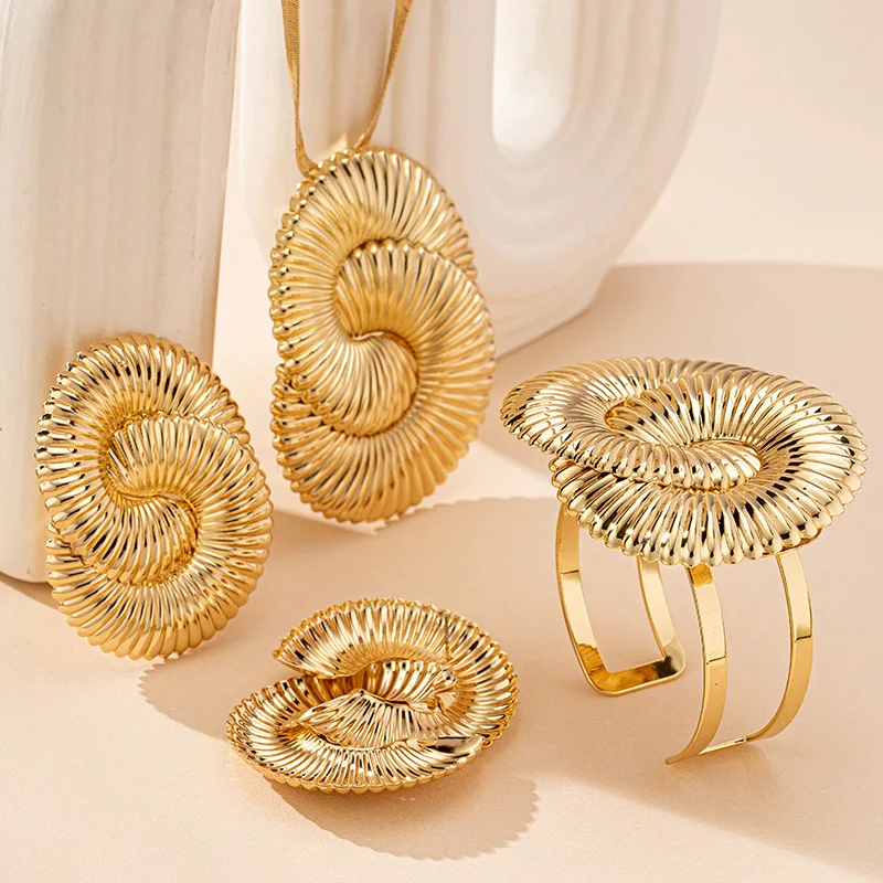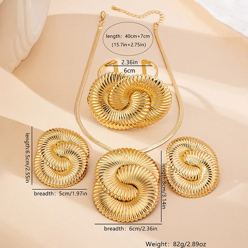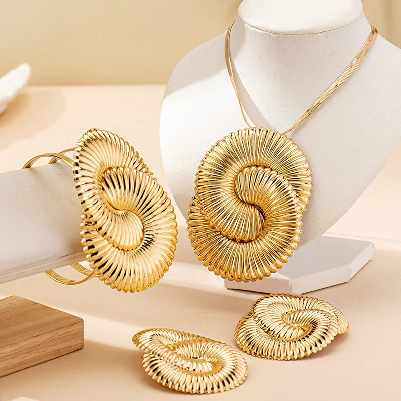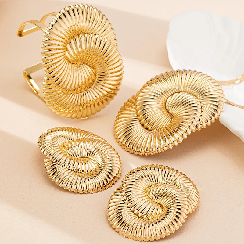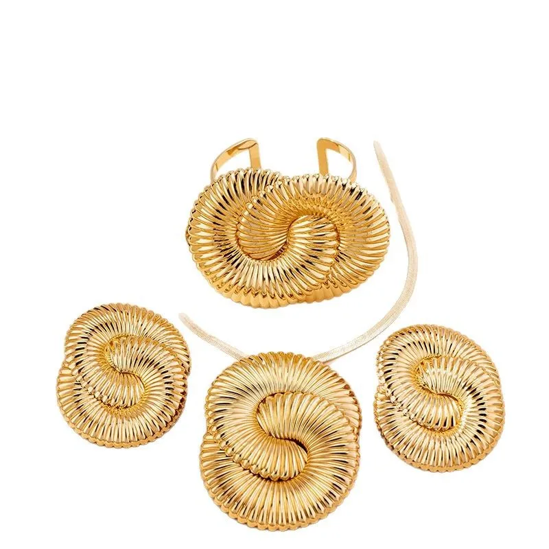 / Geometric Circle Twisted Ripple Women’s Earrings Necklace Bracelet Jewelry Set Fashion Jewelry Accessories 2025 New Style