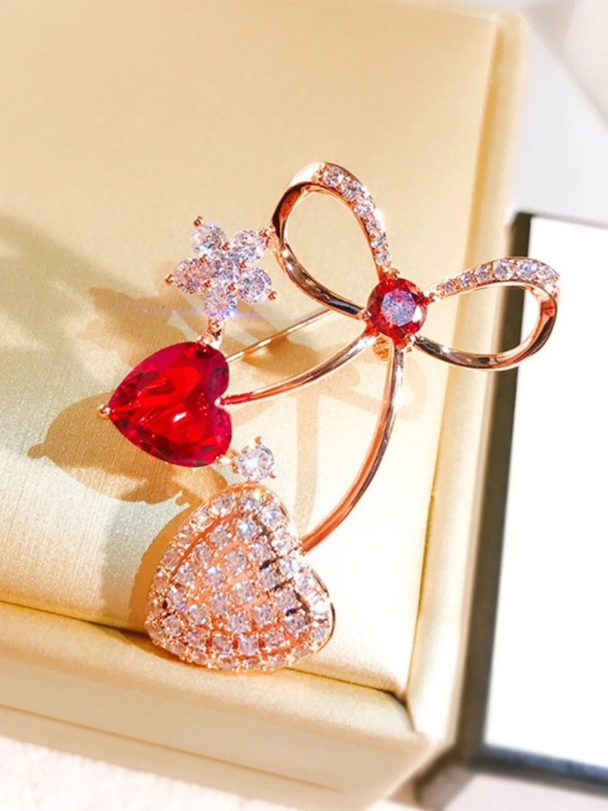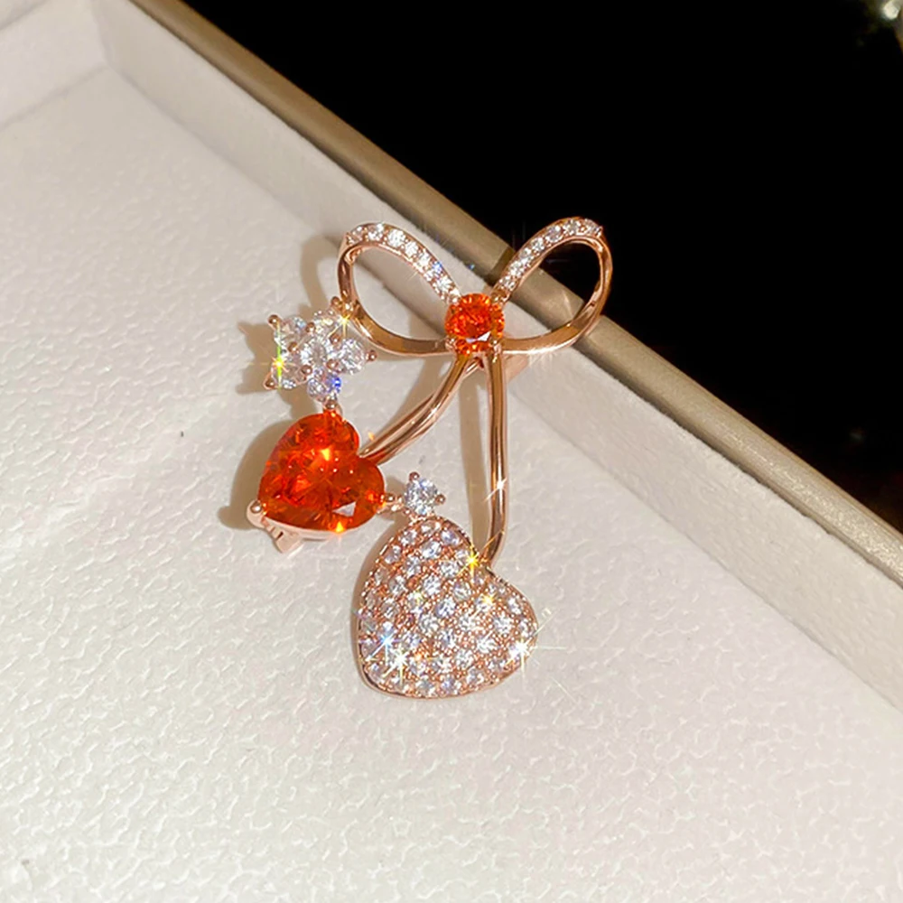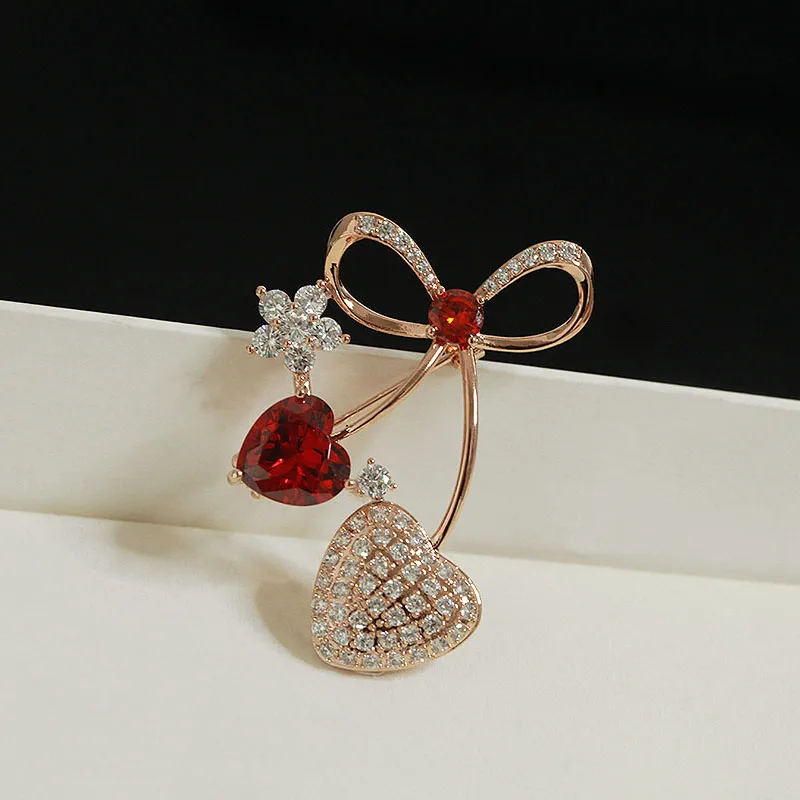 / Glanzend Strass Rode Liefde Hart Cherry Broches Pin voor Vrouwen Meisjes Strik Corsage Kleding Accessoires