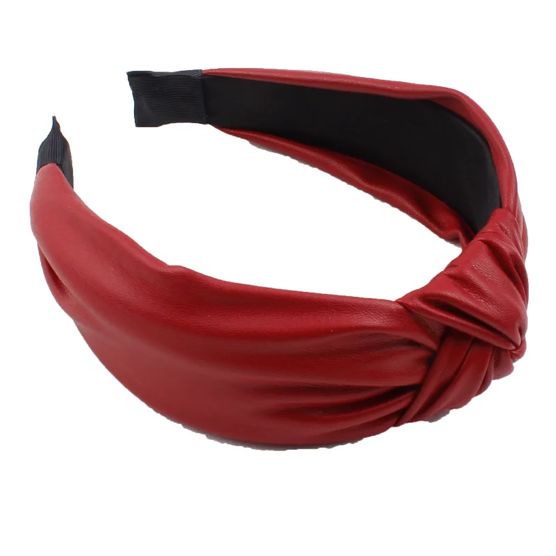 Grensoverschrijdende Europese en Amerikaanse hot-stijl PU imitatieleer geknoopte hoofdband Modieuze gedraaide hoofdband met brede rand quantity