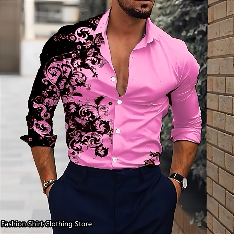 / Hot 9-kleuren herenoverhemd klassiek shirt met lange mouwen losse stijl Hawaiiaans overhemd mode casual overhemd oversized maat 6xl