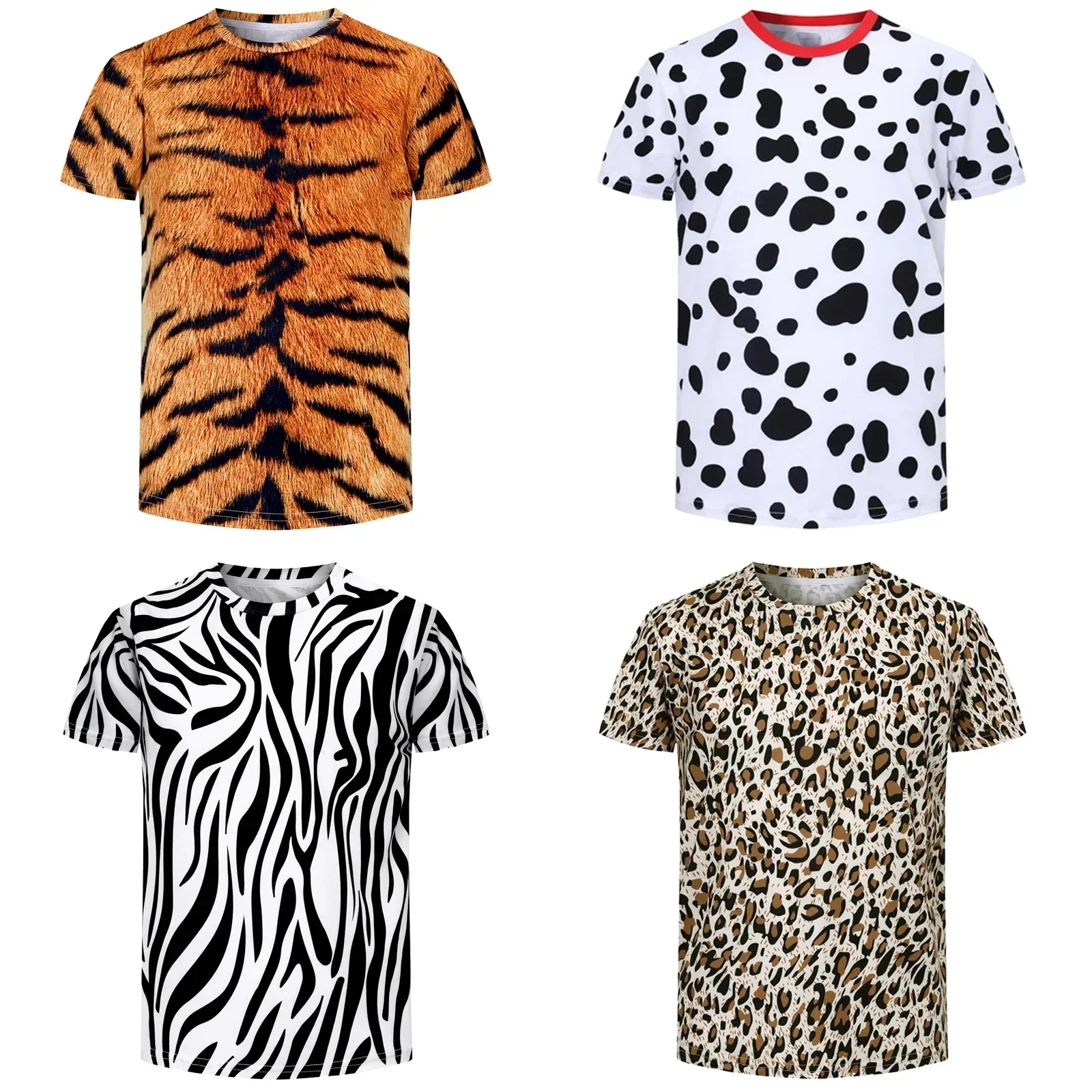 Jongens Tijger T-shirt Luipaard Print 3D Print T-shirts Kids Animal Casual Tees Zebra Giraffe Zomer Tops Nieuwigheid Dalmatische Kleding