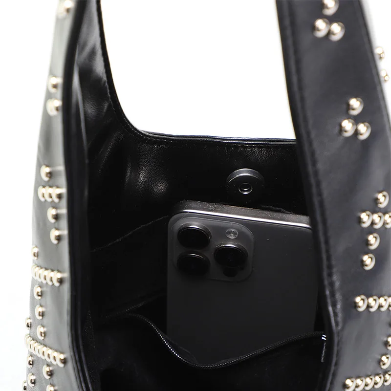/ Luxury Gold Rivet Punk Underarm Bag New Women’s Leopard Print Frosted Bucket Bag High-end Brand Designer Shoulder Tote Handbag