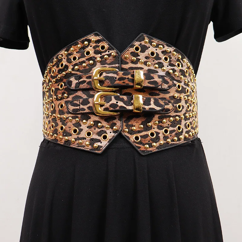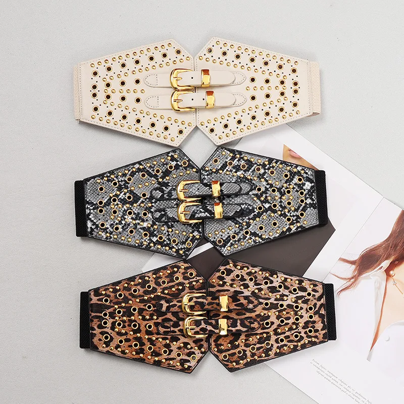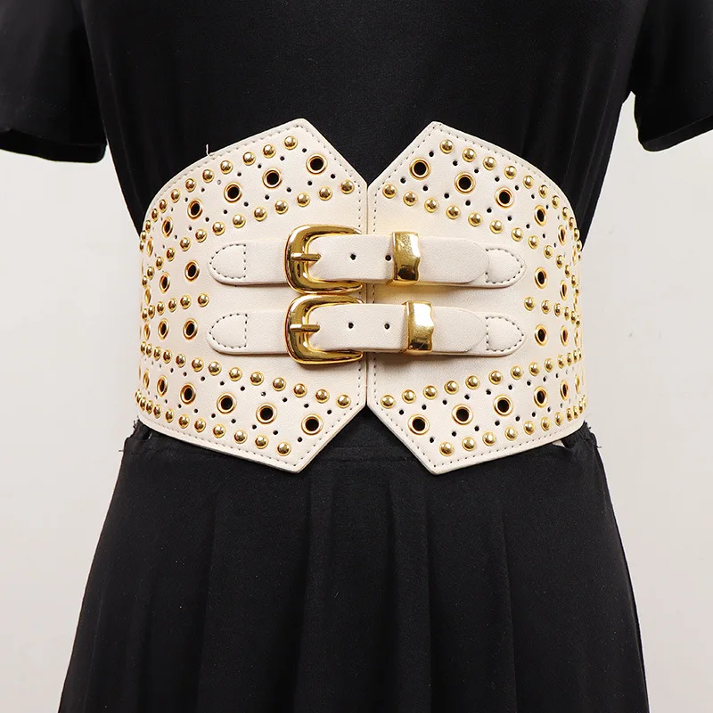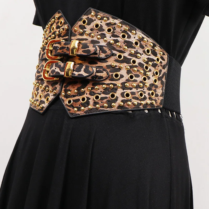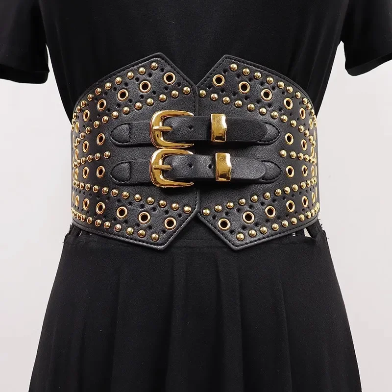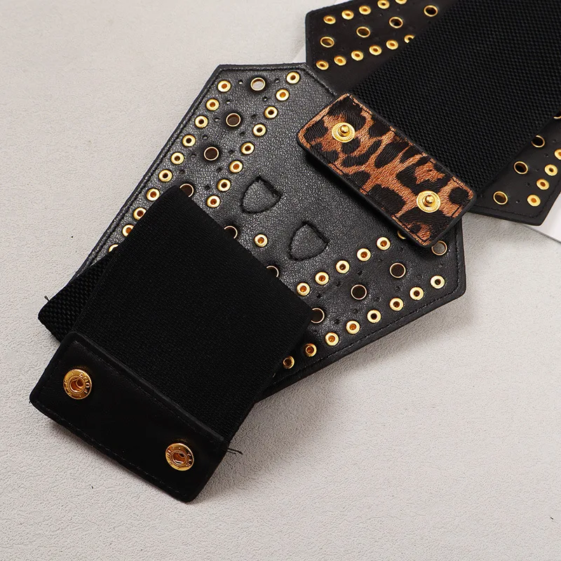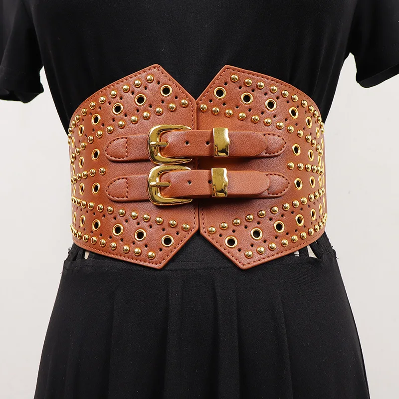 New Women's Retro PU Leather Elastic Band Rivet Punk Corset Female Cummerbund Coat Waistband Dress Decration Wide Belt quantity