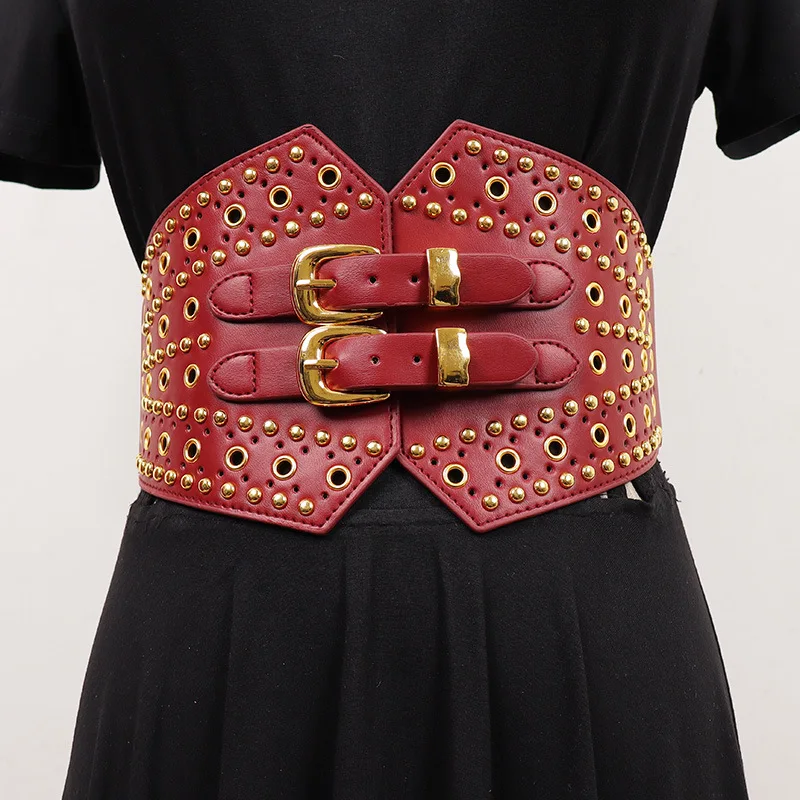 / New Women’s Retro PU Leather Elastic Band Rivet Punk Corset Female Cummerbund Coat Waistband Dress Decration Wide Belt