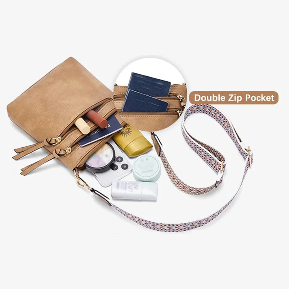 Nieuwe Casual Dubbele Rits Dames Enkele Schouder Crossbody Tas Retro Eenvoudige Crossbody Tas Multifunctionele Tuyк Estat Kirkрок