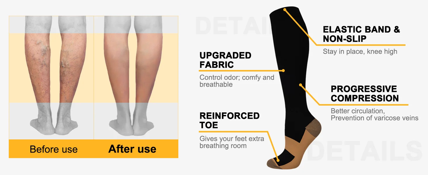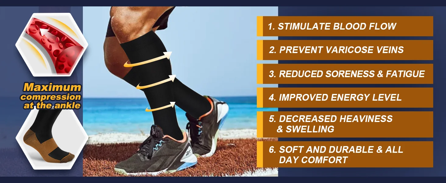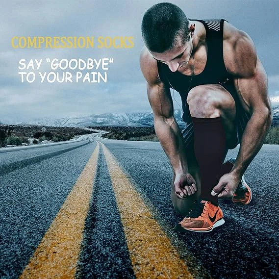 Nieuwe compressiekousen voor spataderen Dames Heren Nylon Sport Marathon Effen kleur Sokken