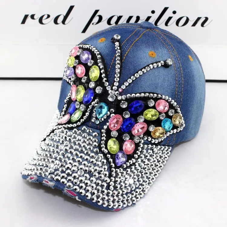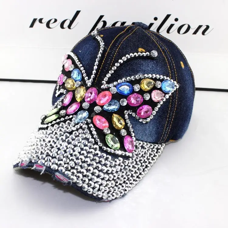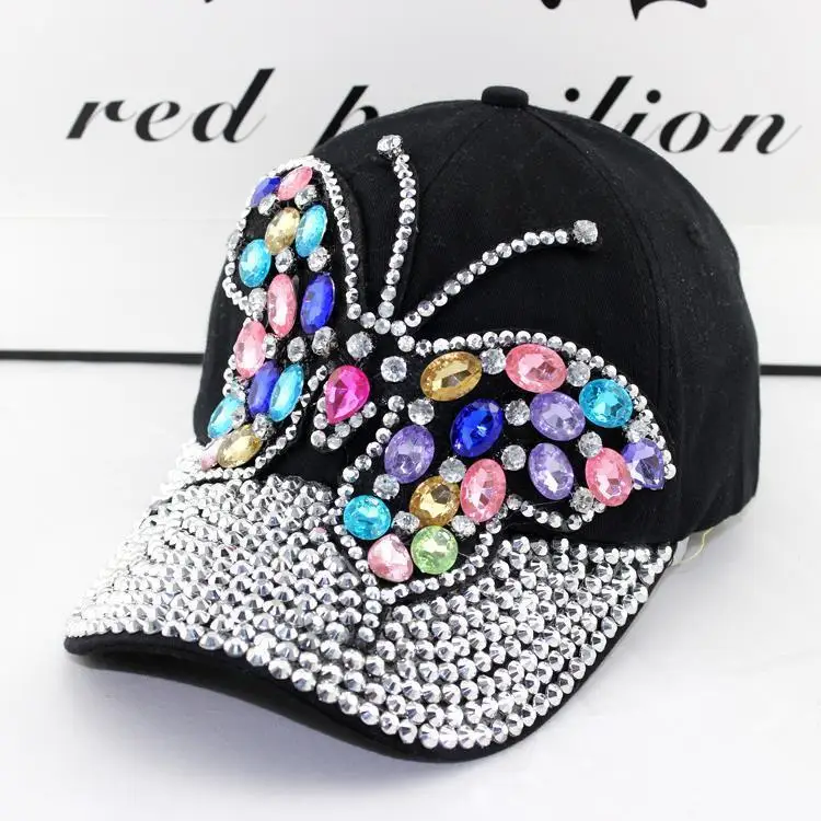 Nieuwe Mode Outdoor Dameshoed Strass Sporthoed Baseball Caps Zonnehoed Cowboypet Gouden Vlinder quantity