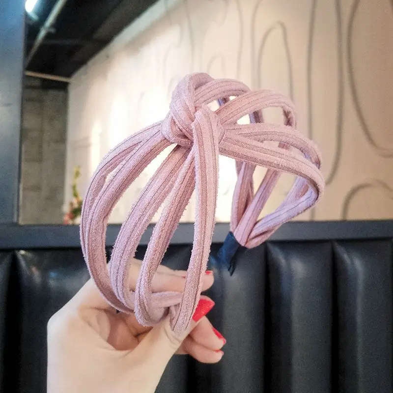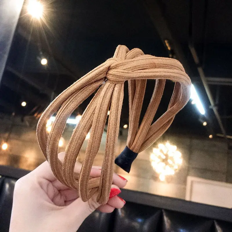 Nieuwe Mode Vrouwen Uitgehold Brede Haarbanden Handgemaakte Eenvoudige Kruis Boog Headwraps Persoonlijkheid Effen Kleur Hoofdbanden Haar Houder