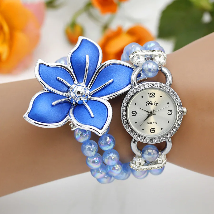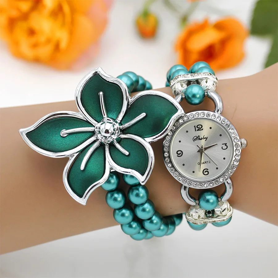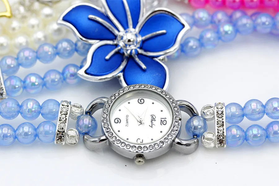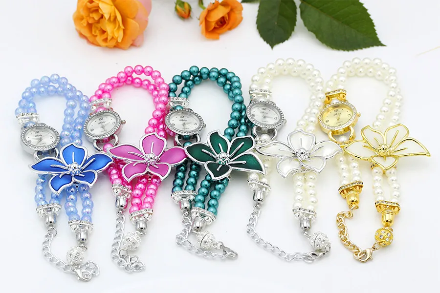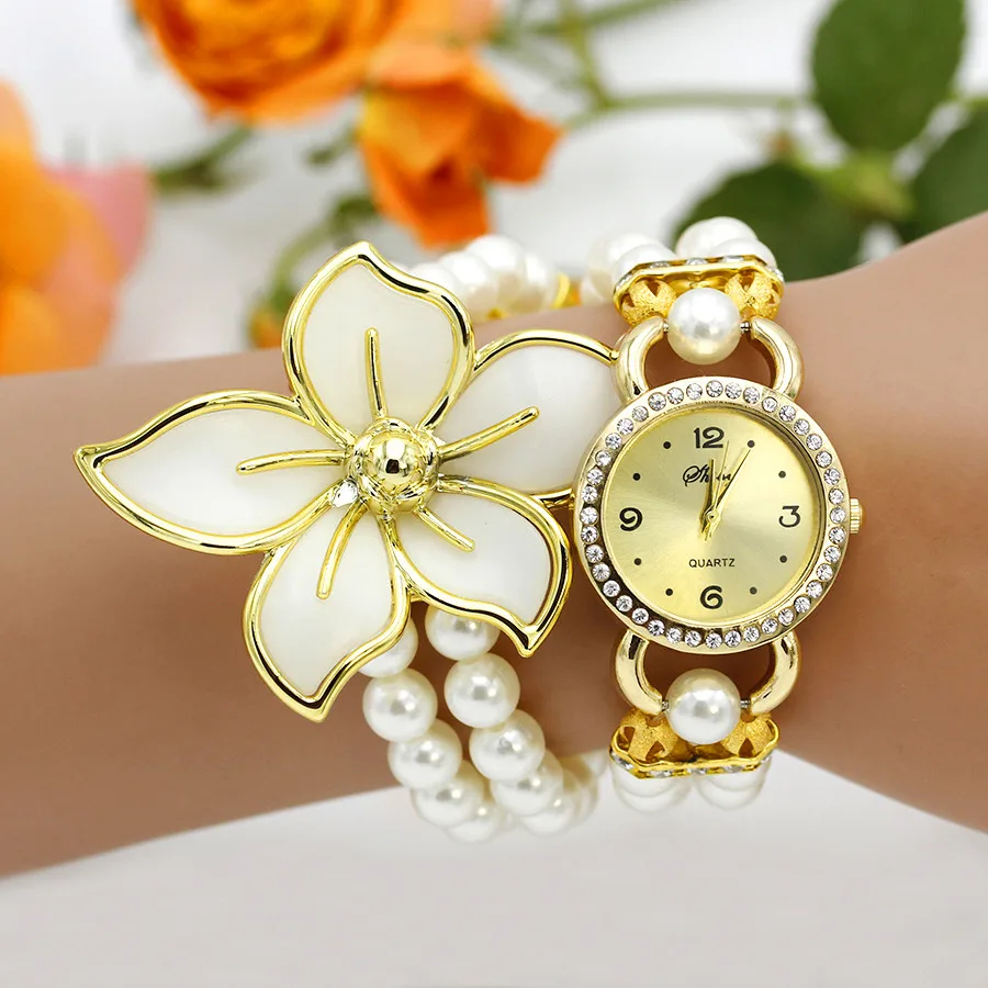 Nieuwe Mode Vrouwen Jurk Horloges Dames Parelketting Witte Bloem Armband Quartz Horloges Vrouwen Strass Horloges quantity