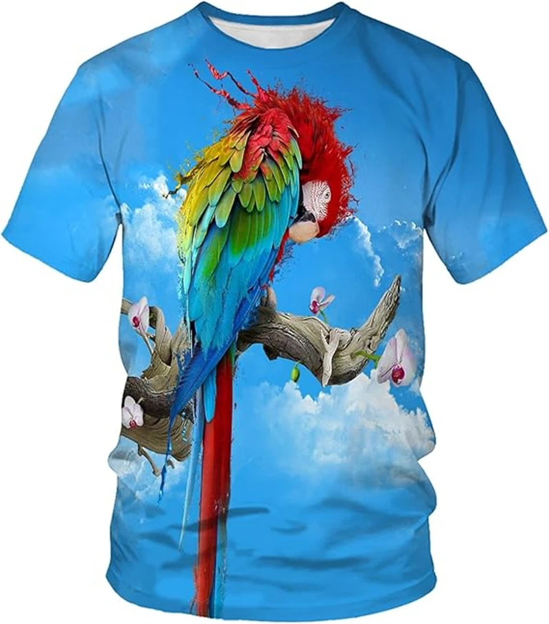 Retro Dier Papegaai Patroon 3d Gedrukt Heren T-shirt Zomer Mode Trend Creatieve Korte Mouwen Casual Unisecx Losse Kleding quantity