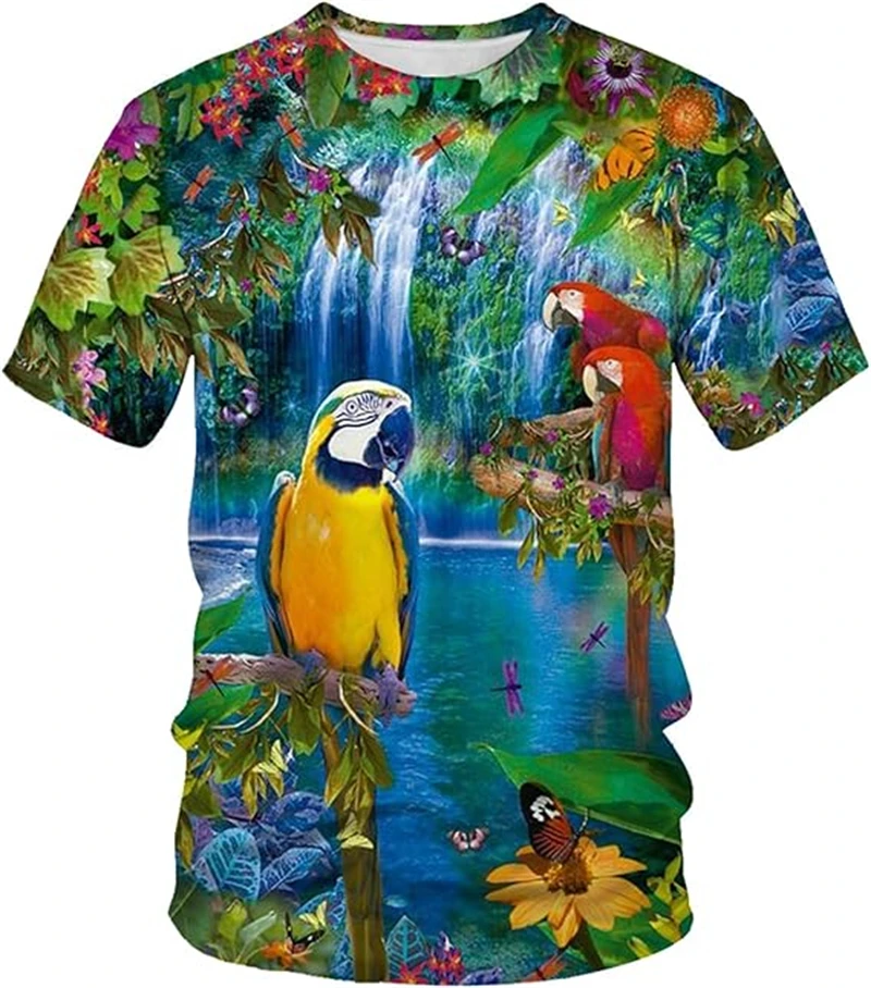 / Retro Dier Papegaai Patroon 3d Gedrukt Heren T-shirt Zomer Mode Trend Creatieve Korte Mouwen Casual Unisecx Losse Kleding