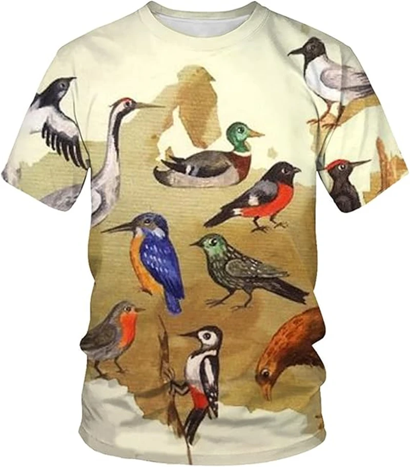 Retro Dier Papegaai Patroon 3d Gedrukt Heren T-shirt Zomer Mode Trend Creatieve Korte Mouwen Casual Unisecx Losse Kleding