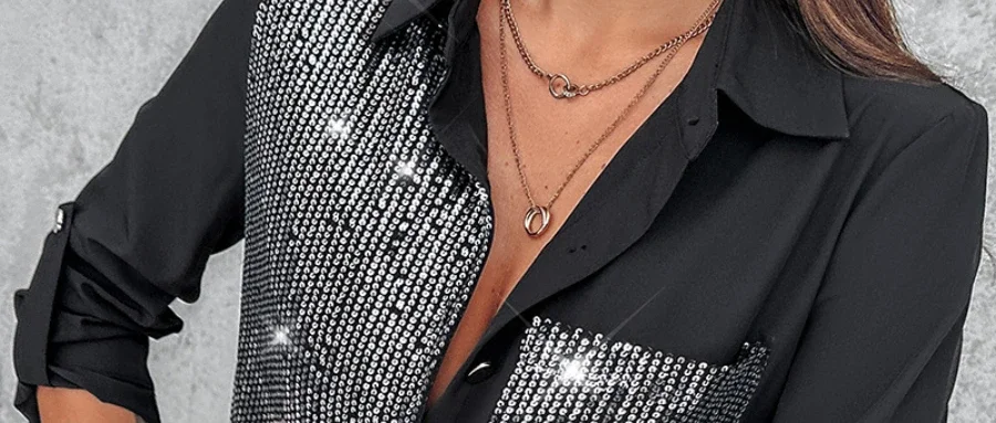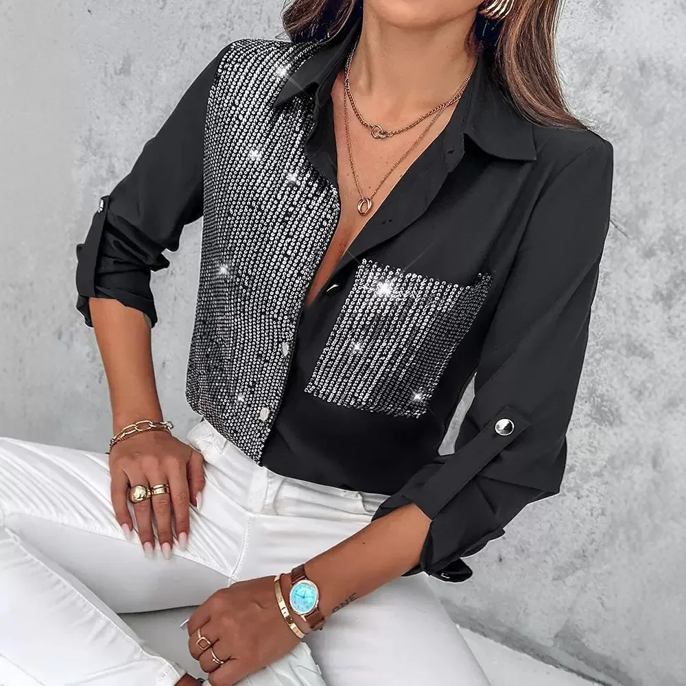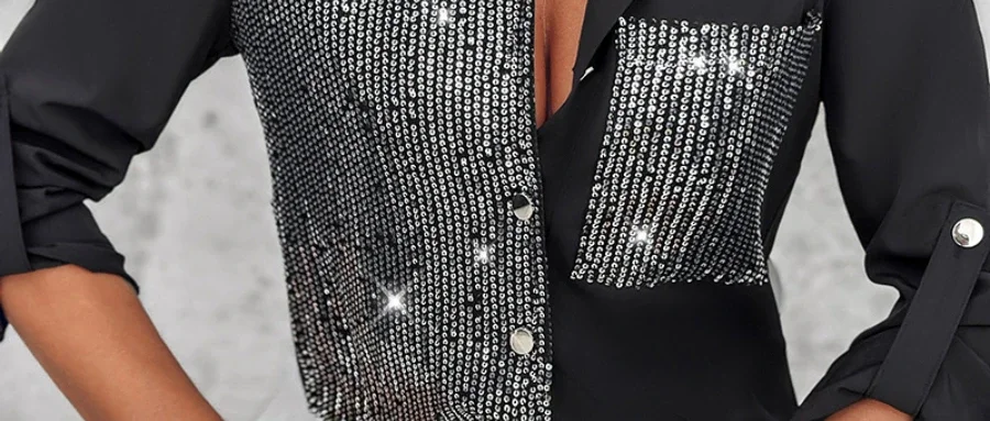 Roll Tab Mouw Button Down Contrast Pailletten Shirt Dames Zomer Mode Casual Shirt Top Blouse quantity