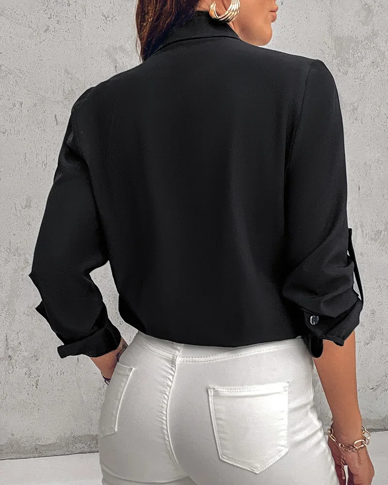 / Roll Tab Mouw Button Down Contrast Pailletten Shirt Dames Zomer Mode Casual Shirt Top Blouse