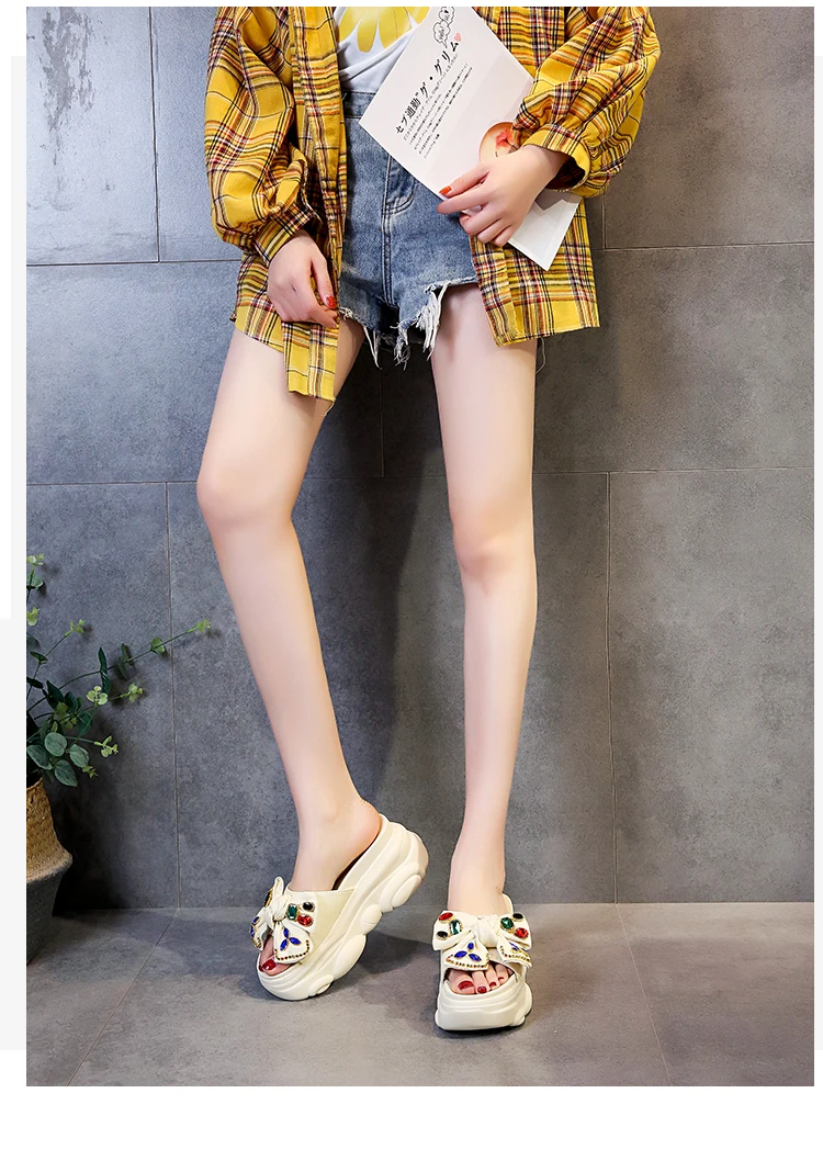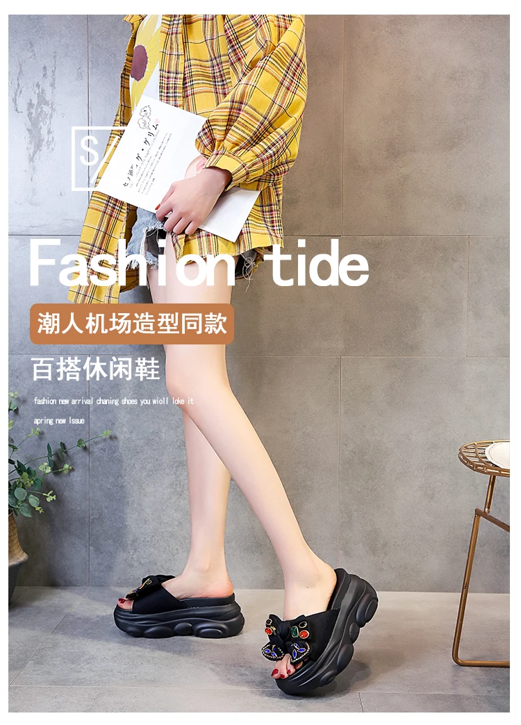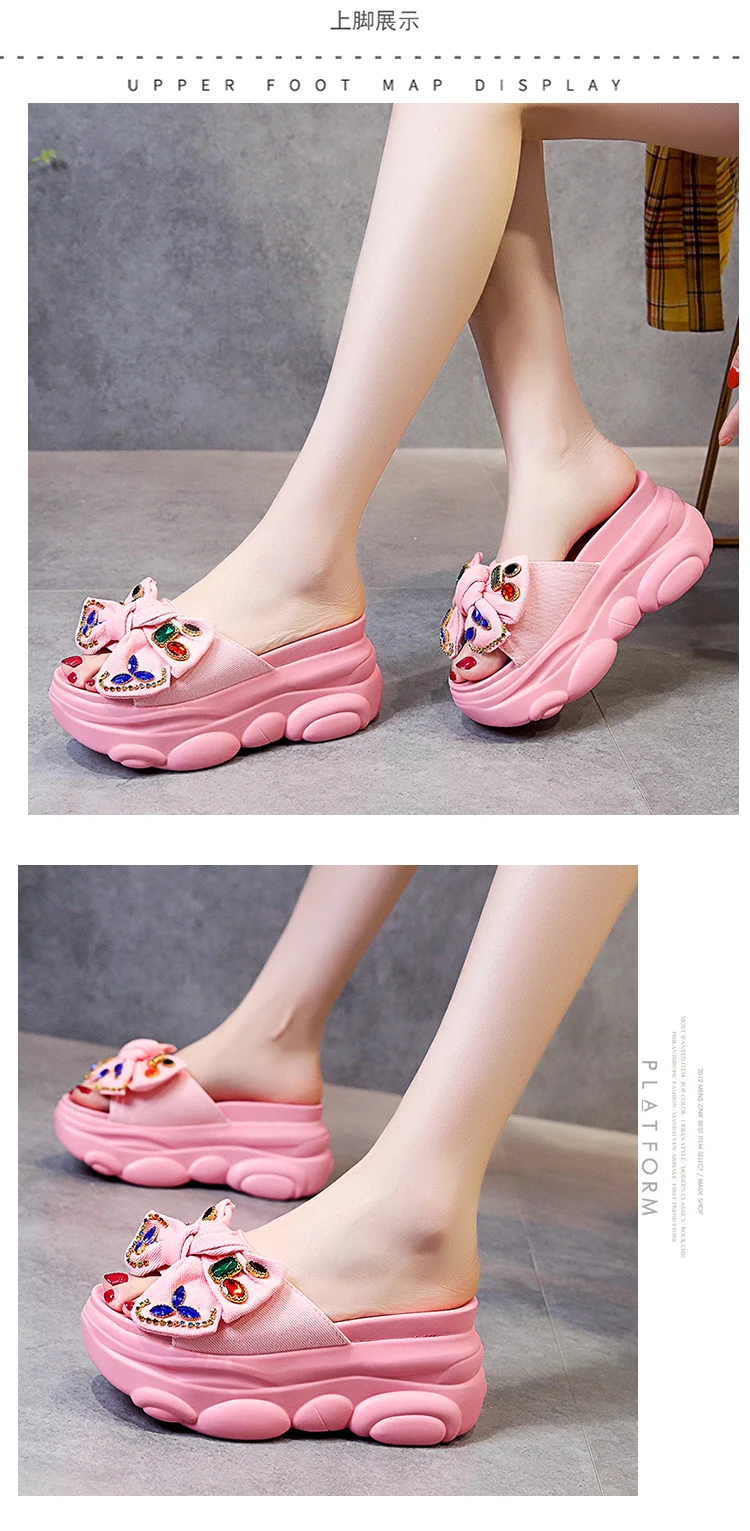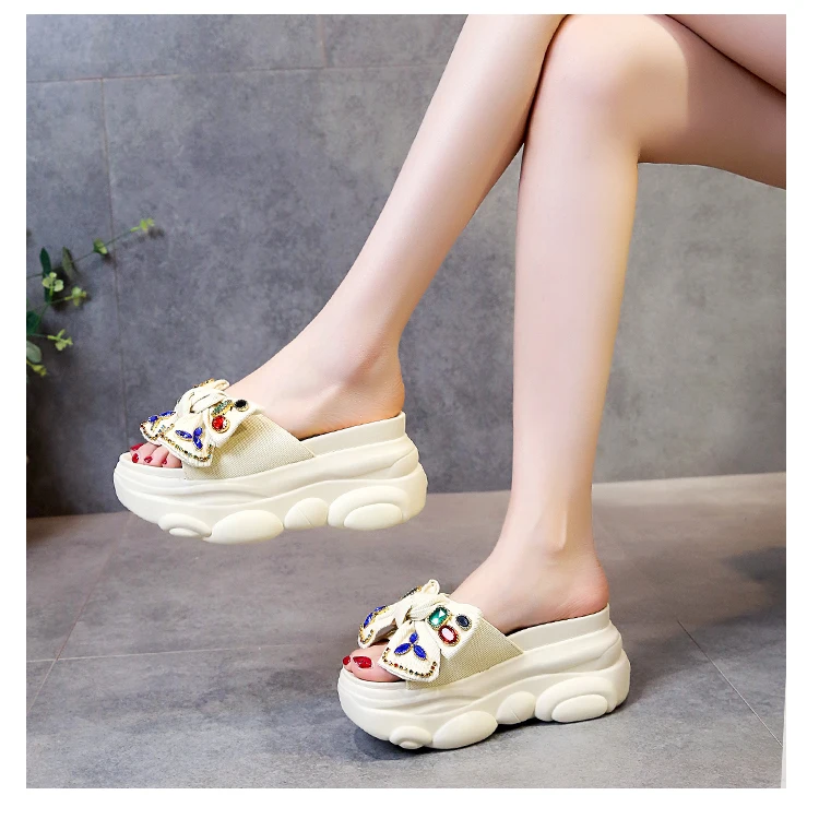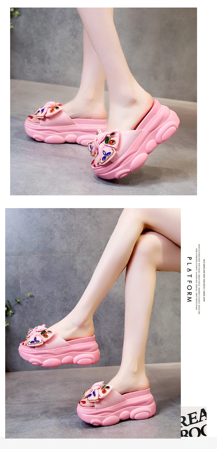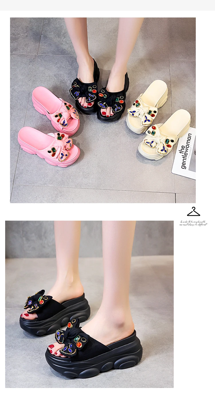 Verhoogde interne platte schoenen Vrouwelijke huisslippers Platformslippers Dames op een sleehak Muiltjes Slides Vlinderknoop 2025, Hallo quantity