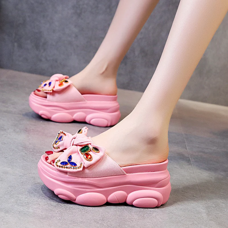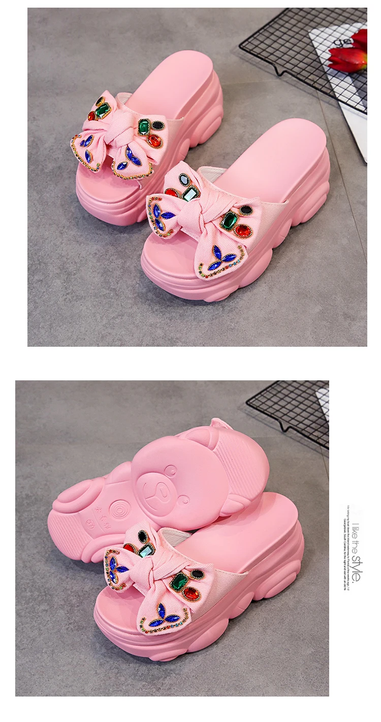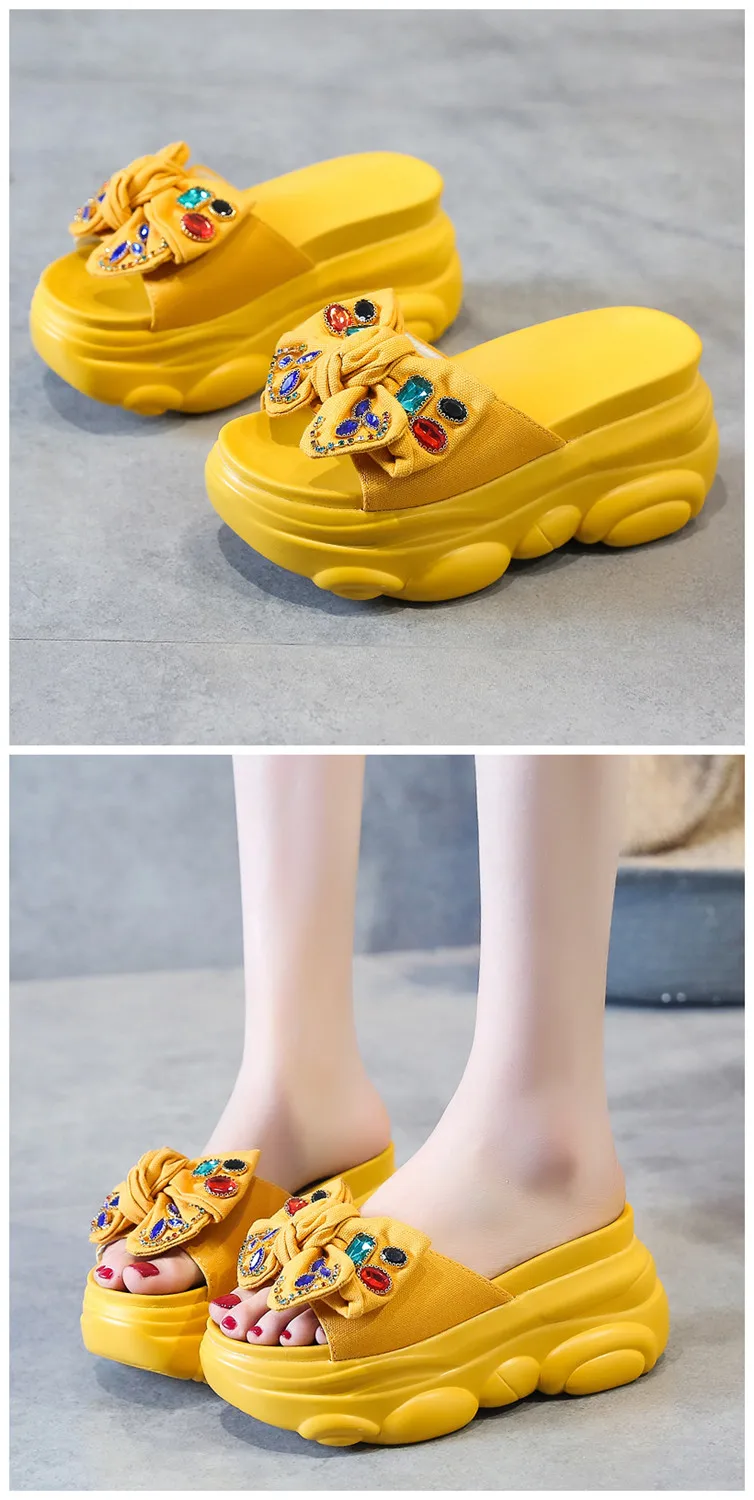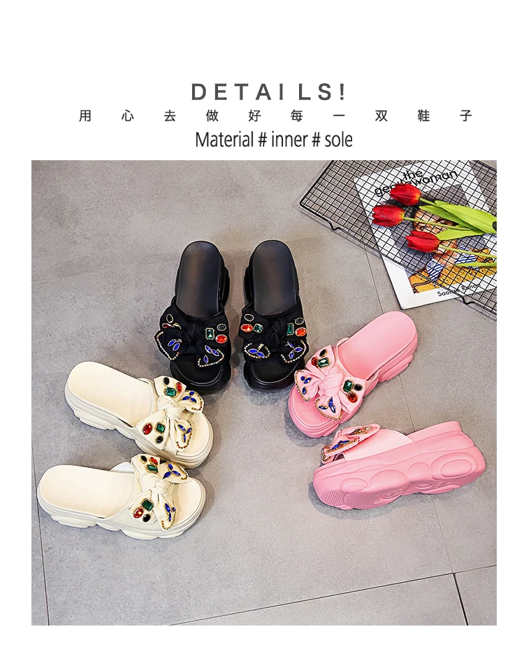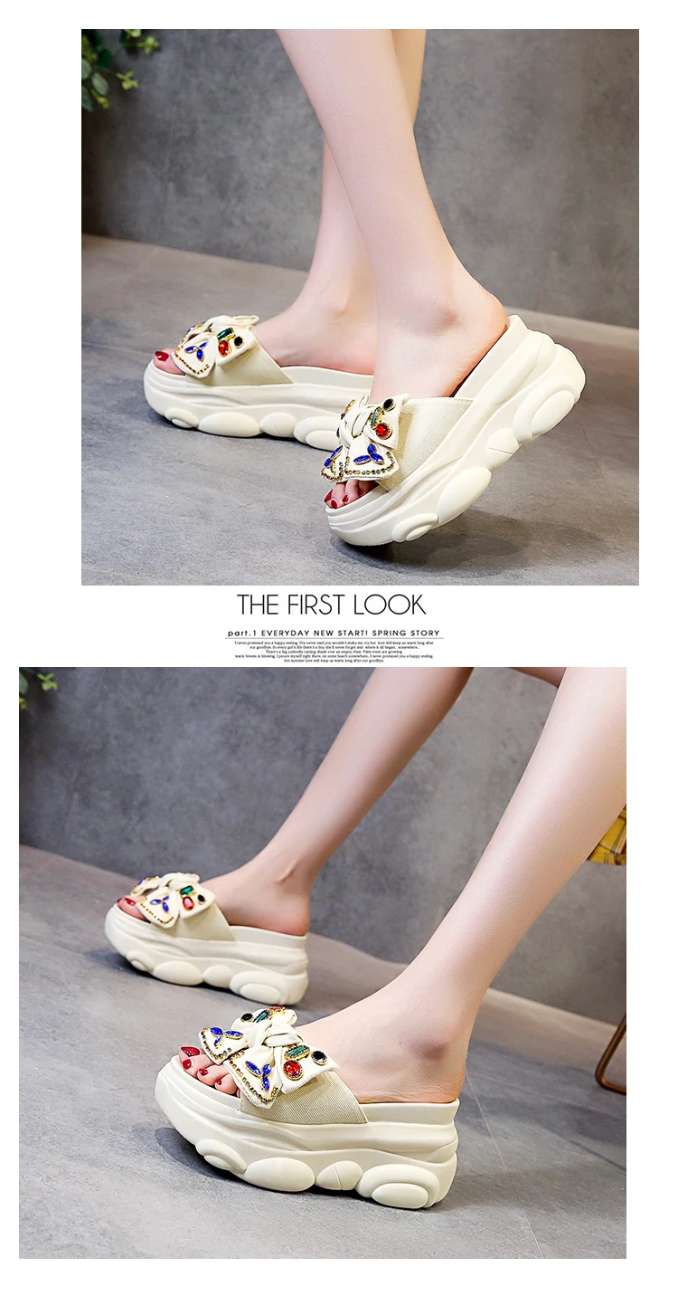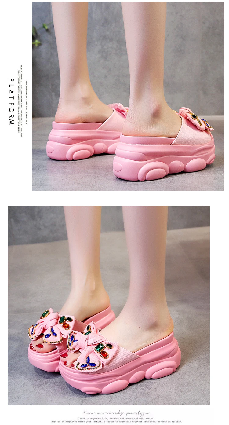 Verhoogde interne platte schoenen Vrouwelijke huisslippers Platformslippers Dames op een sleehak Muiltjes Slides Vlinderknoop 2025, Hallo quantity