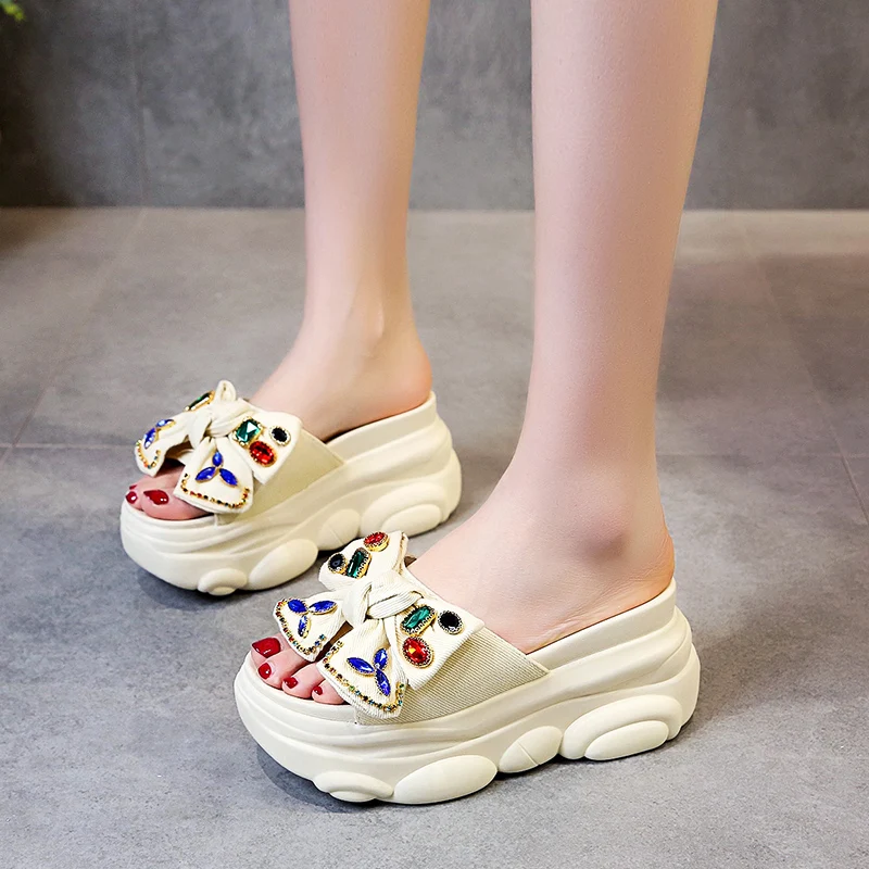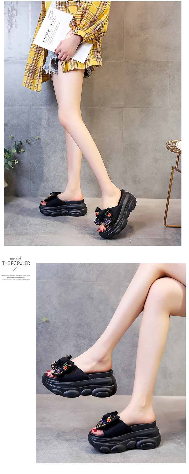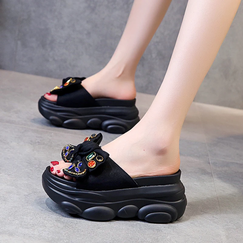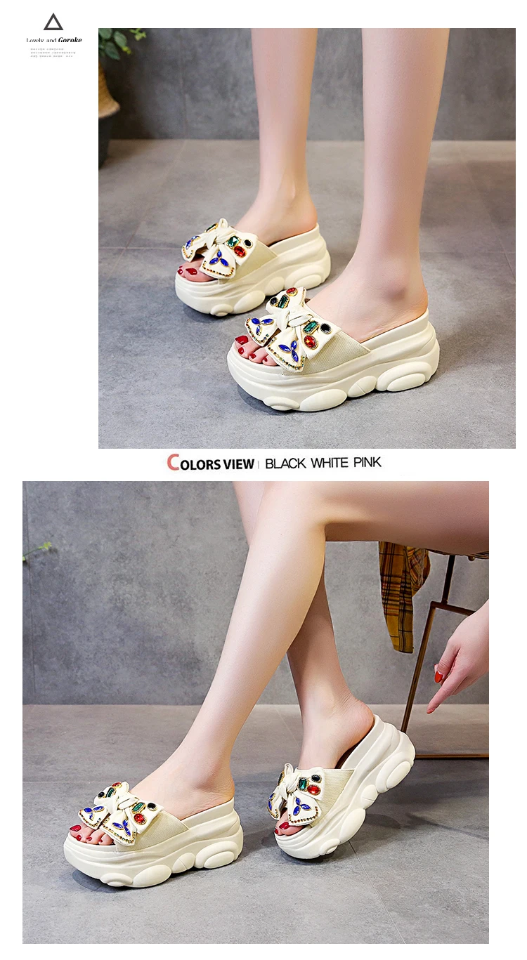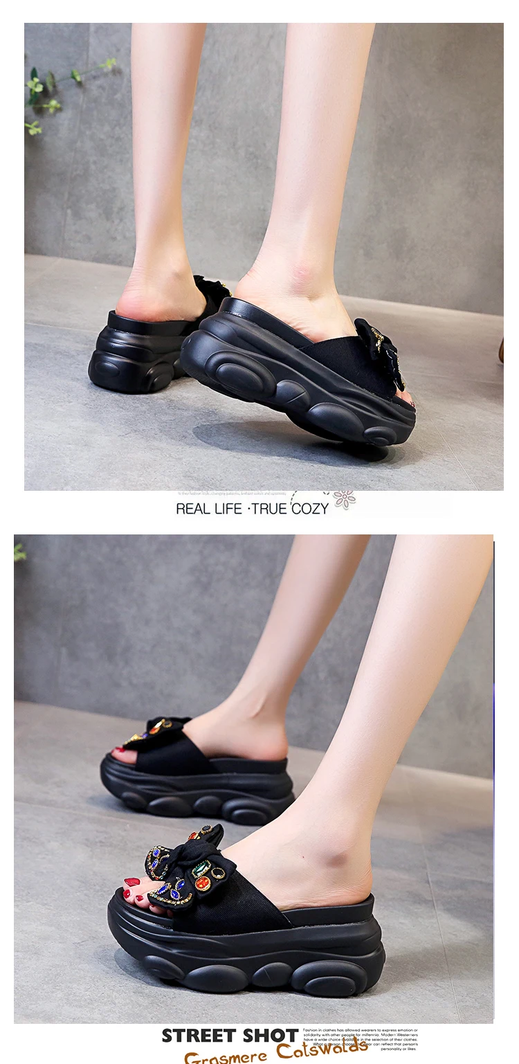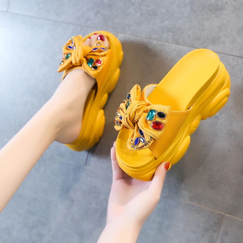 Verhoogde interne platte schoenen Vrouwelijke huisslippers Platformslippers Dames op een sleehak Muiltjes Slides Vlinderknoop 2025, Hallo quantity