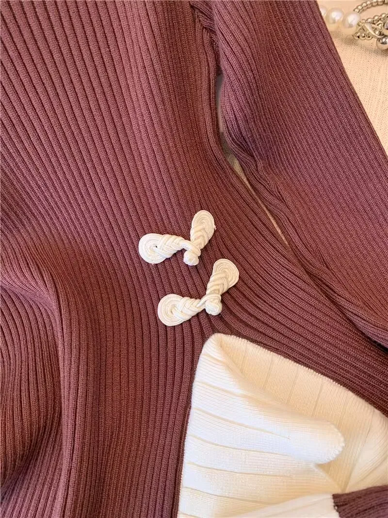 / Vintage knoop knop gebreide trui nieuwe lente herfst elasticiteit slanke coltrui lange mouw kantoor dame elegant shirt